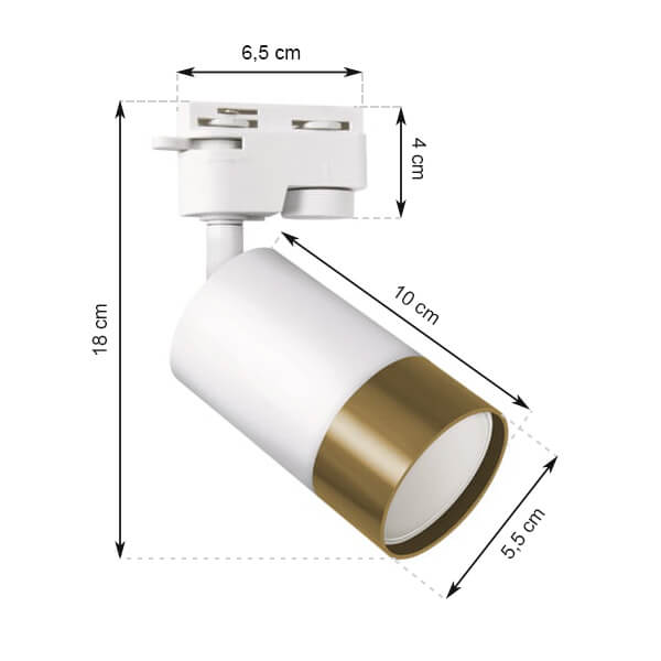 Piękna lampa szynowa, która nie tylko oświetli, ale także udekoruje Twój salon, sypialnie czy korytarz. Możliwość regulacji kierunku świecenia sprawia, że reflektor jest bardzo praktyczny. Oprawa wyróżnia się ciekawym zestawieniem kolorów. Biel i złoto tworzą kontrast, który podkreśli charakter każdej nowoczesnej aranżacji wnętrz. Obudowa została wykonana z trwałego i lekkiego aluminium.