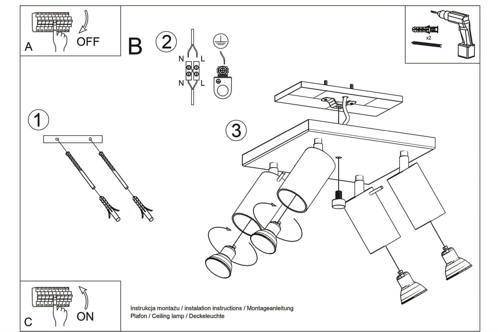Praktyczna i gustowna lampa sufitowa 4-punktowa, która z powodzeniem oświetli Twój salon, kuchnie czy korytarz. Stonowany design i czarny kolor obudowy sprawiają, że lampa jest niezwykle uniwersalna i doskonale prezentuje się w każdej nowoczesnej aranżacji. Co ważne, reflektory zostały wyposażone w chromowane przeguby, które umożliwiają swobodną regulację promieni świetlnych.