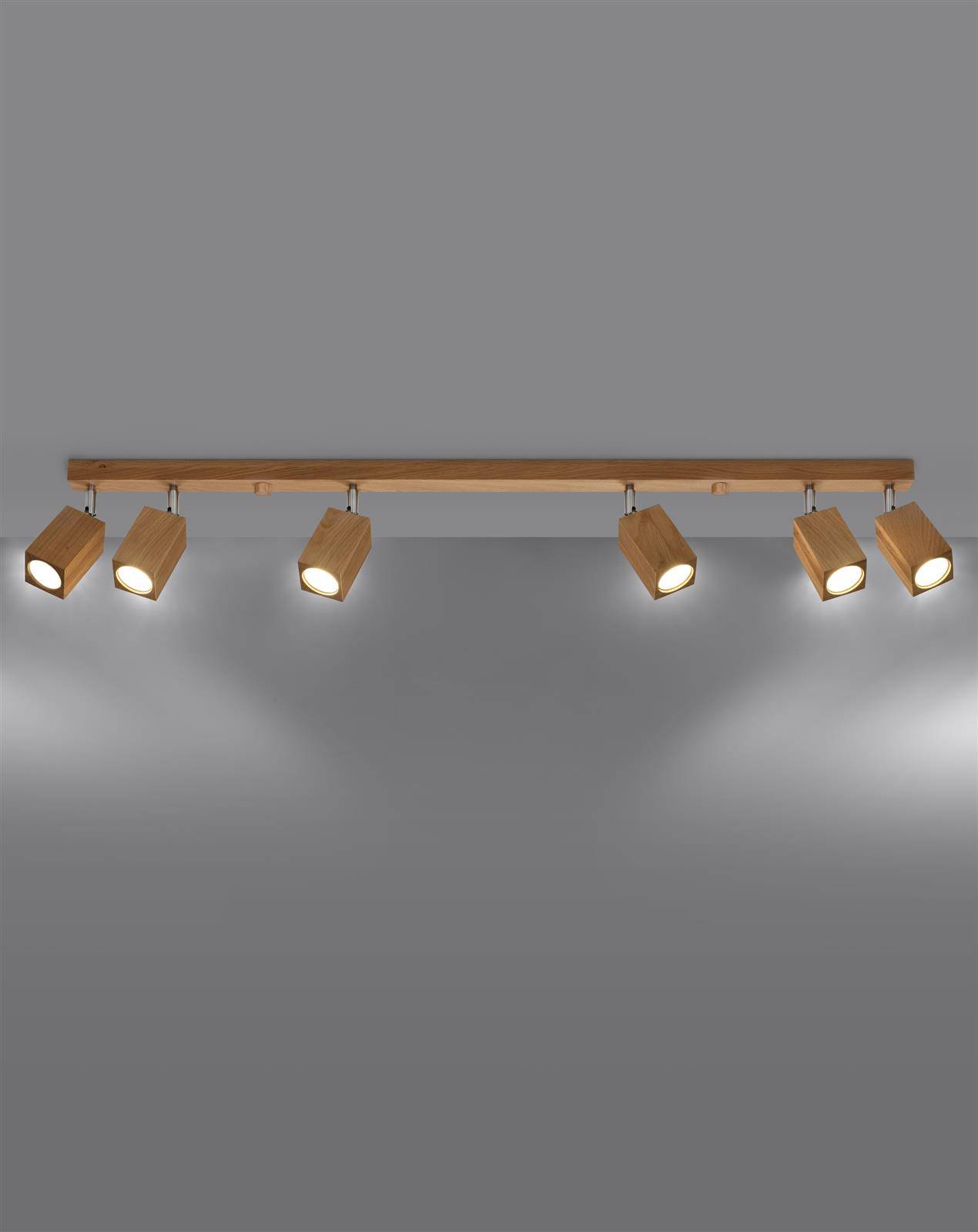 Lampa sufitowa 6 punktowa drewniana KEKE 6xGU10 dąb Lampa sufitowa spot KEKE drewniana dąb 2xGU10