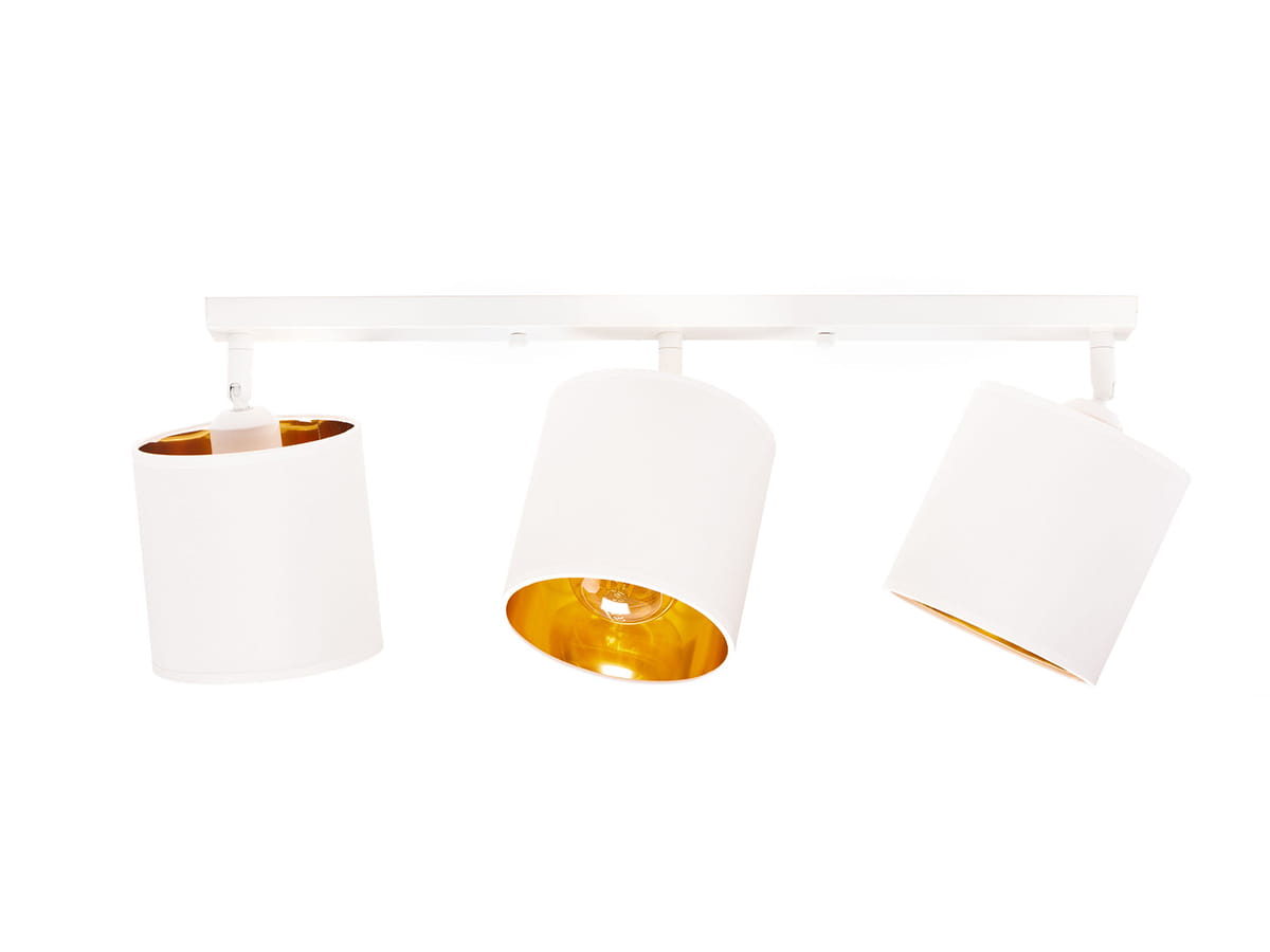 Klosze lampy z zewnątrz są białe, natomiast światło żarówek odbijać będą złote powłoki wewnętrzne kloszów.