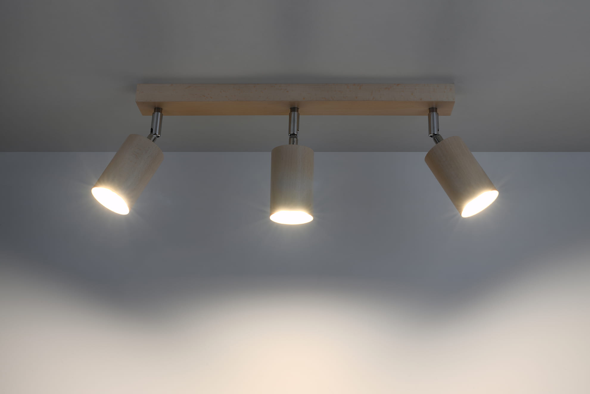 Obudowa lampy sufitowej BERG została wykonana z naturalnego drewna. Dzięki temu lampa doskonale prezentuje się w rustykalnych aranżacjach. 3 funkcjonalne reflektory oświetlą dowolną przestrzeń w Twoim domu! Ruchome oprawy umożliwiają swobodne operowanie kierunkiem padania światła, a dzięki wymiennym żarówkom GU10 sam możesz wybrać ich barwę i natężenie.