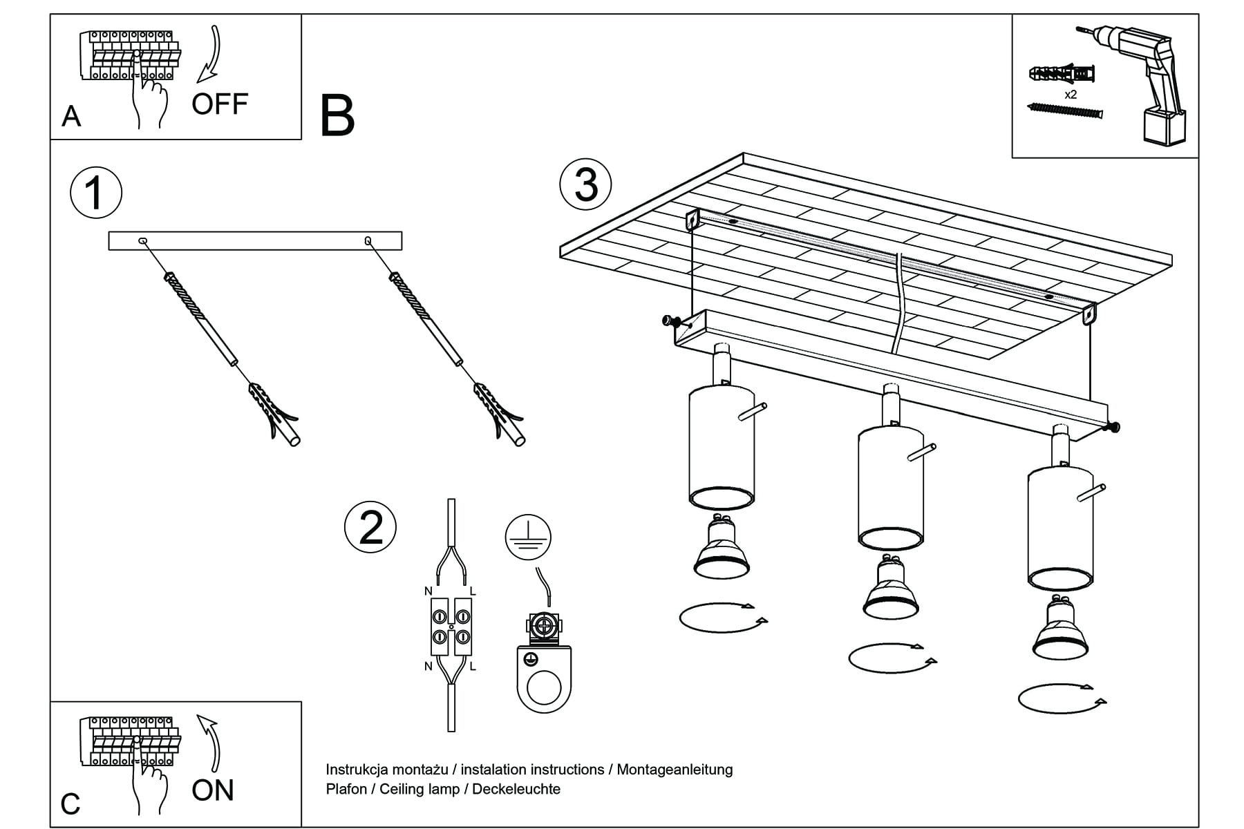 Lampa sufitowa spot BERG drewniana 3xGU10