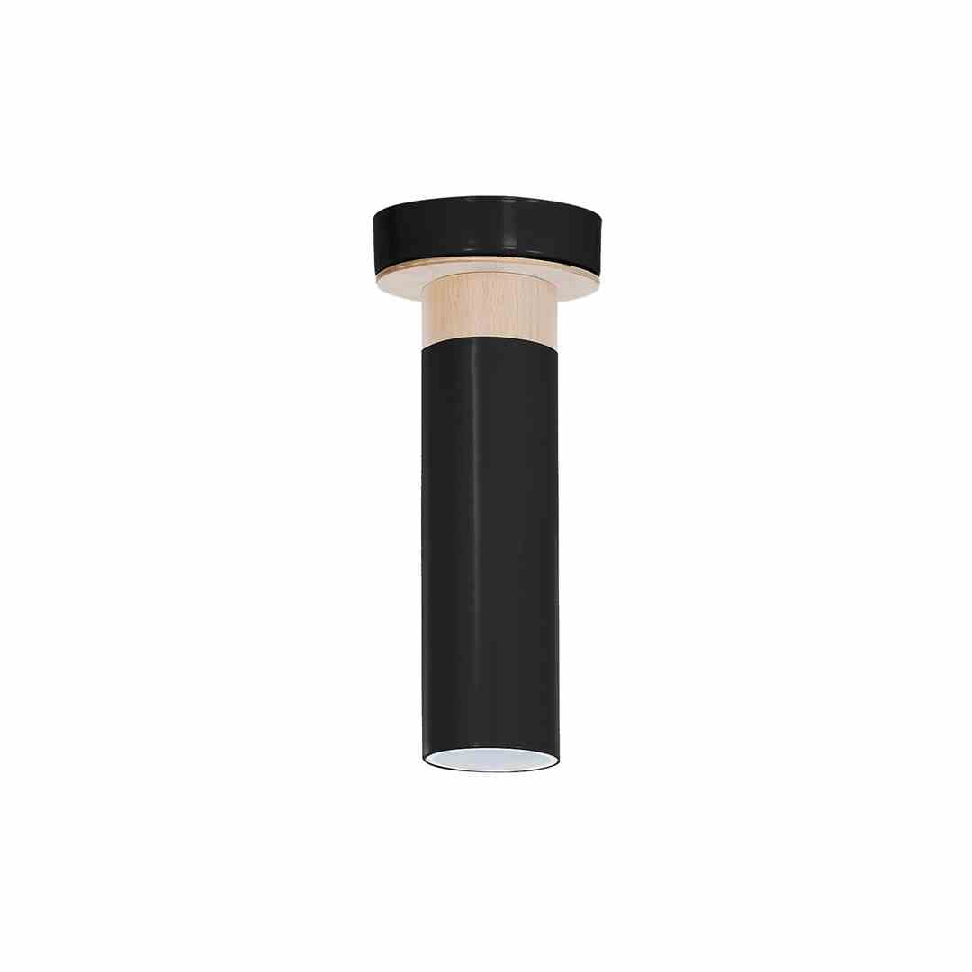 Lampa sufitowa wąska tuba czarno drewniana Lampa sufitowa tuba biała z elementami drewna