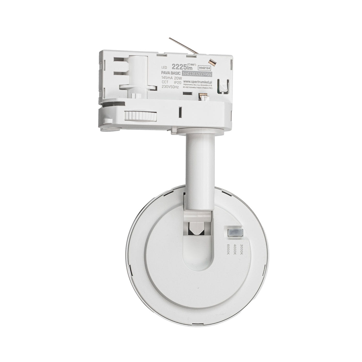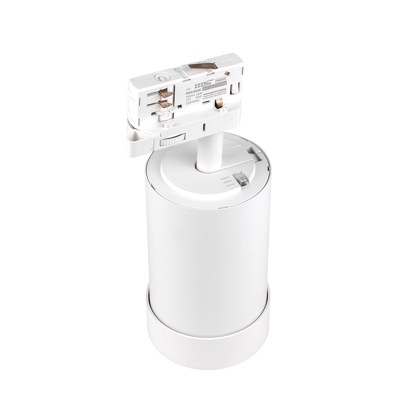 Lampa szynowa LED biała Pava Basic CCT 20W regulowany kąt świecenia 3 fazowa