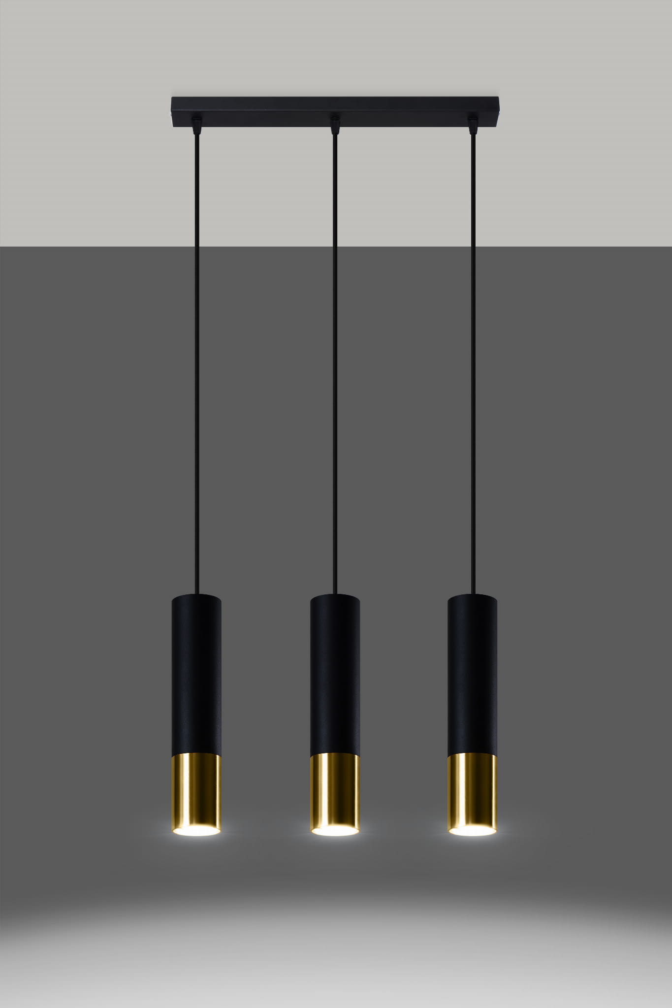 Lampa tuba wisząca potrójna LOOPEZ czarno złota