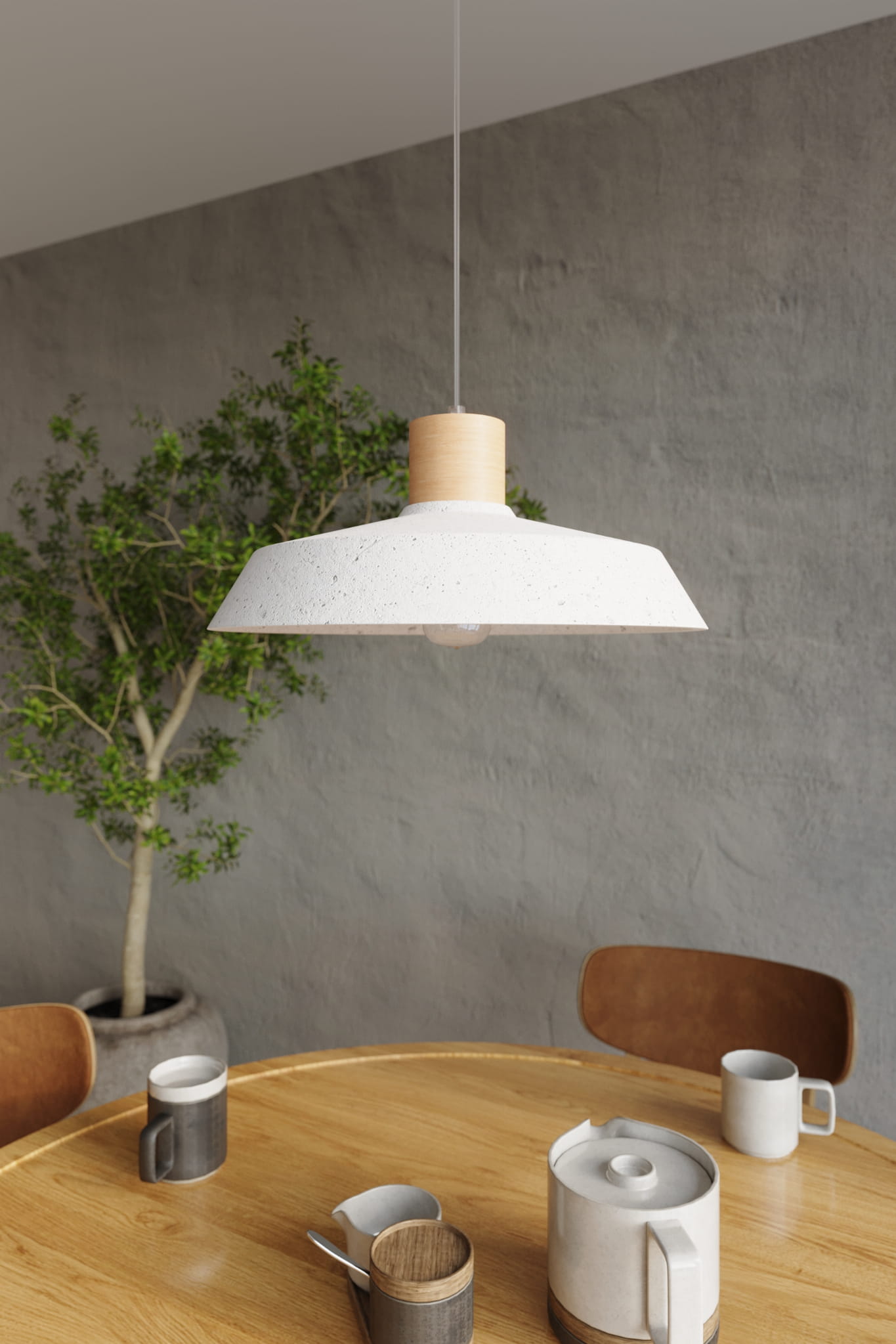 Wyjątkowa lampa wisząca AFRA wykonana z niezwykle trwałego, jasnoszarego betonu. To propozycja, która nie tylko oświetli, ale także udekoruje każde wnętrze utrzymane w stylu loftowym czy industrialnym. Surowy design został połączony z funkcjonalnością, gdyż szeroki klosz lampy doskonale rozprasza światło. Lampa wisząca betonowa AFRA jest kompatybilna z energooszczędnymi żarówkami LED E27.
