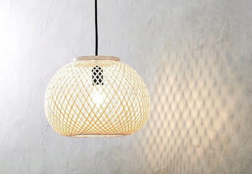 Lampa wisząca, która została przedstawiona na zdjęciach, wykonana jest z bambusowej plecionki ułożonej w kształt tradycyjnego kulistego klosza. Nawiązuje do natury, która staje się coraz modniejsza w każdym kolejnym sezonie.
