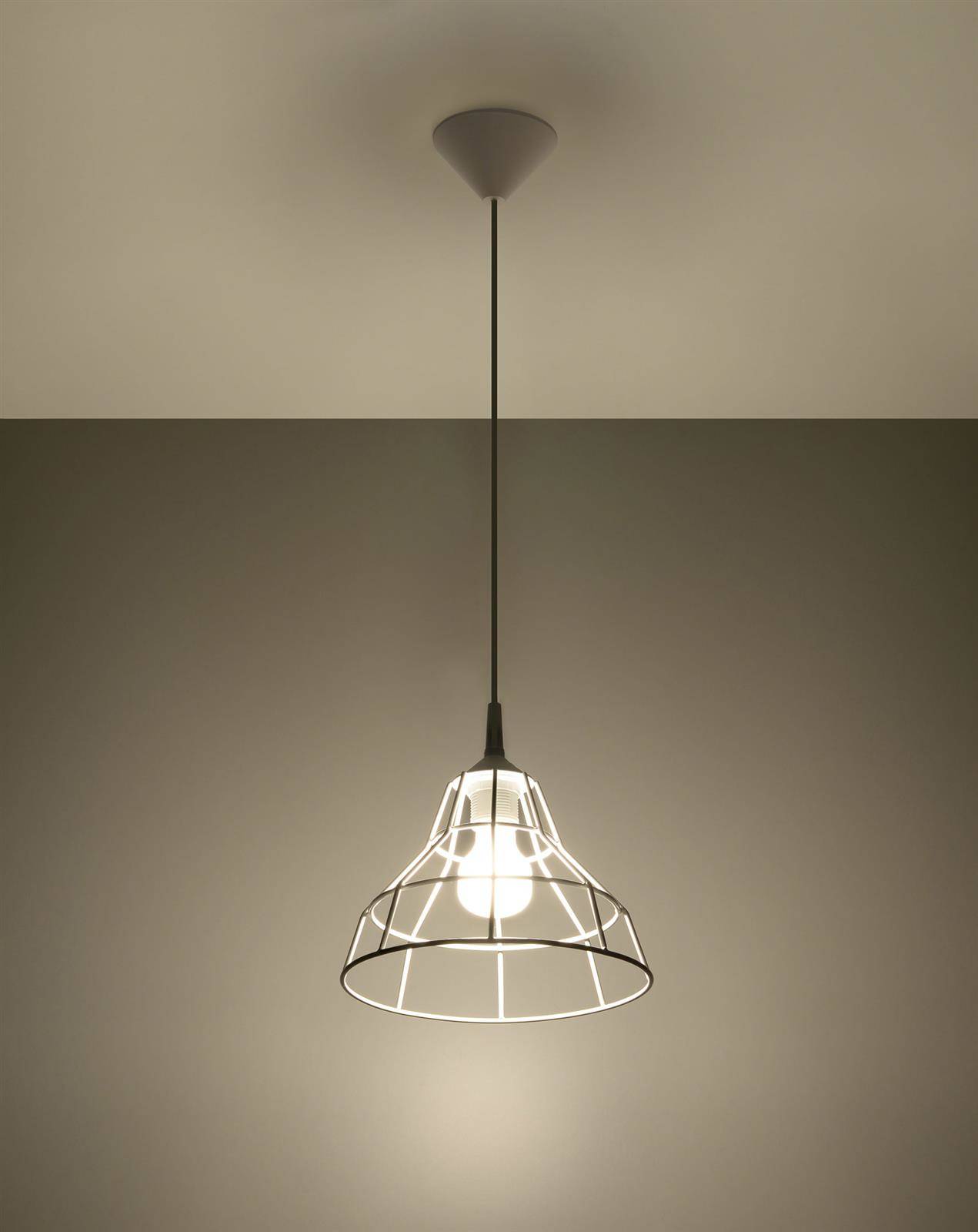 Druciana lampa wisząca ANATA ze względu na swoją surową formę i oszczędny design doskonale wkomponowuje się w styl industrialny i loftowy. Poza funkcją użytkową lampa świetnie sprawdza się w roli nietypowej dekoracji. Neutralna, biała barwa obudowy sprawia, że ten model współgra z większością kompozycji kolorystycznych.