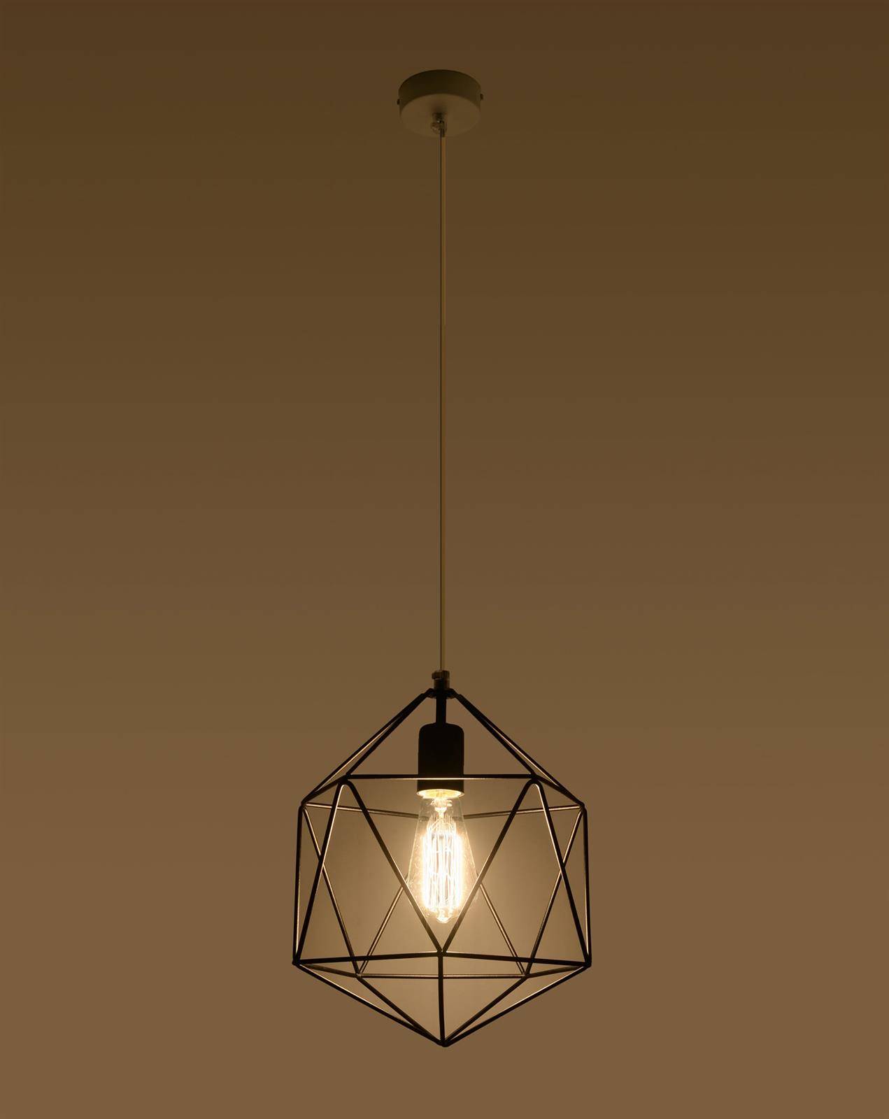 Lampa wisząca z geometrycznym, mocno odsłoniętym kloszem wniesie mnóstwo światła do Twojego salonu, jadalni czy sypialni. Oferowany model doskonale prezentuje się we wnętrzach urządzonych w stylu industrialnym i loftowym. Lampa wisząca druciana GASPARE została wykonana z wysokiej jakości stali i jest kompatybilna z energooszczędnymi żarówkami E27.