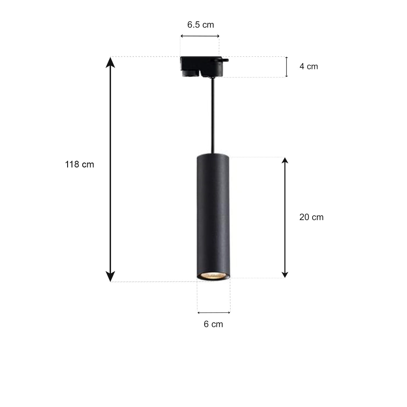 Lampa wisząca na szynoprzewód czarna 20cm IDAR to prosta i równocześnie elegancka lampa przeznaczona do montażu na szynoprzewodach w systemie 1 fazowym. Oznacza to, że wszystkie lampy zamontowane na szynoprzewodzie zapalasz bądź gasisz równocześnie. Średnica lampy wynosi 5,8 cm, długość 20 cm. Kolor lampy - czarny matowy, wykonana z aluminium. Lampa posiada gwint na żarówki typu GU10, nie ma dodatkowego szkła ani obudowy klosza - żarówka idealnie wpasowuje się w oprawkę i świeci bez straty światła, nie przechodząc przez żadną kolejną powierzchnię.