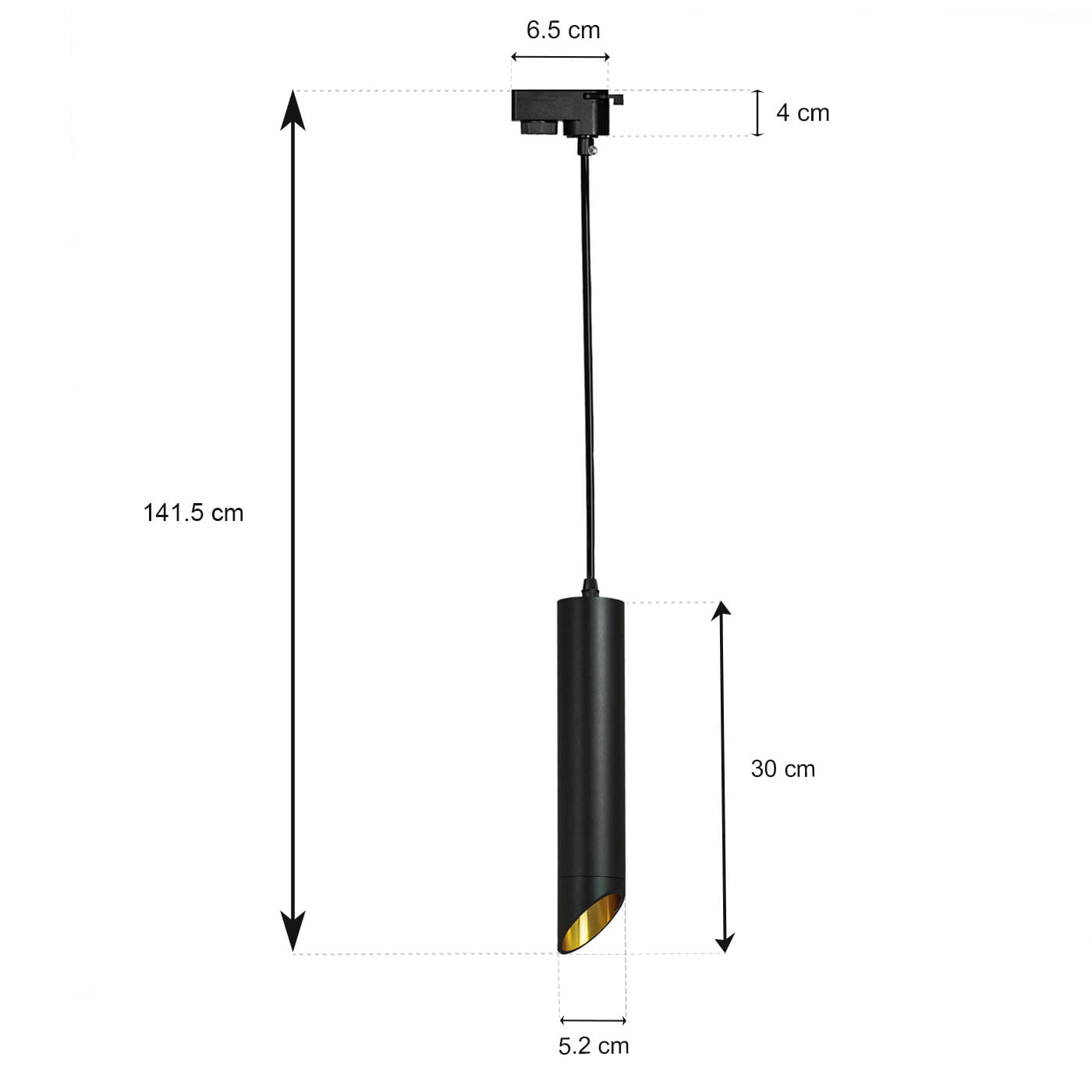 Lampa szynowa tuba wisząca czarna 30cm 1-fazowa