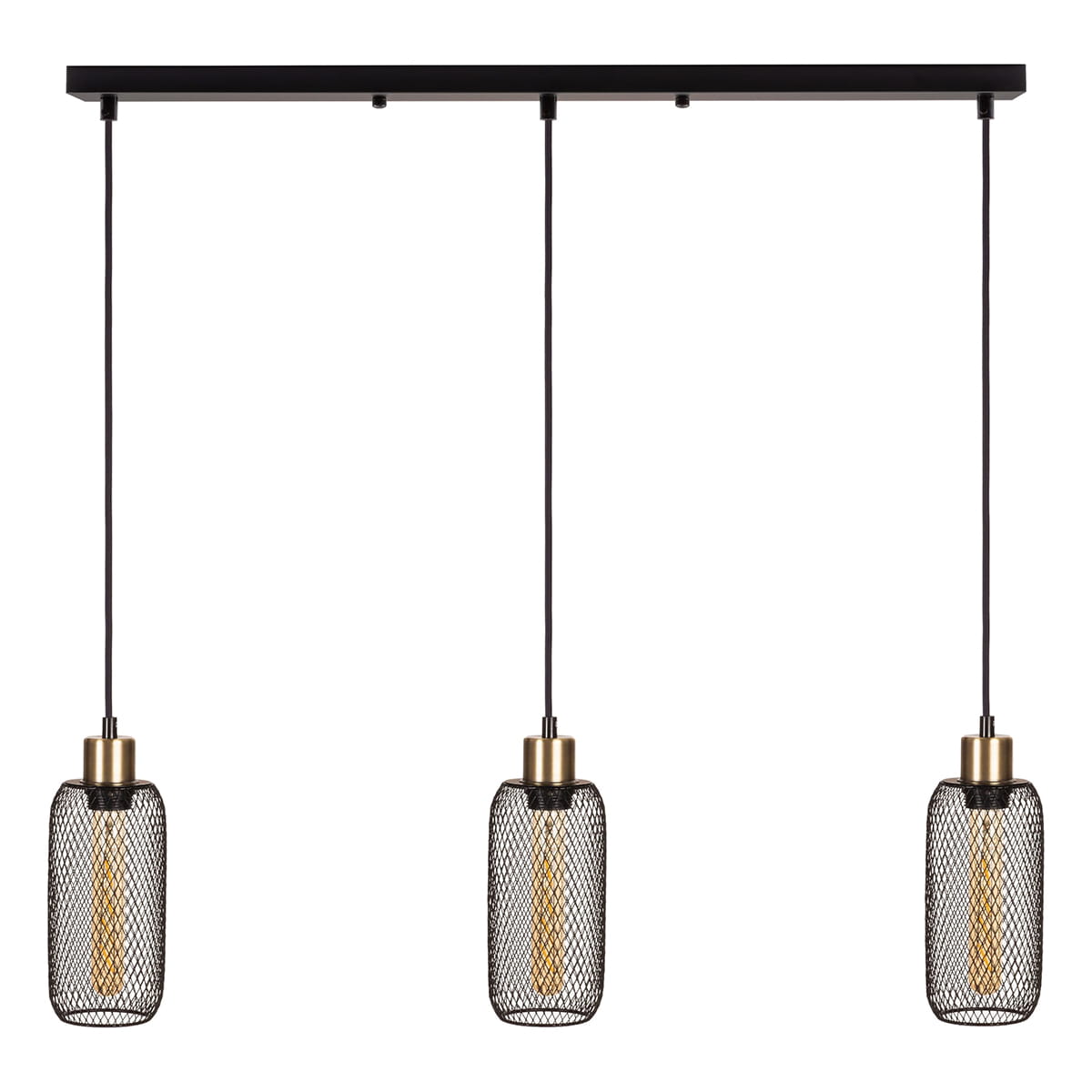 Lampa wisząca czarno złota potrójna ażurowa na listwie