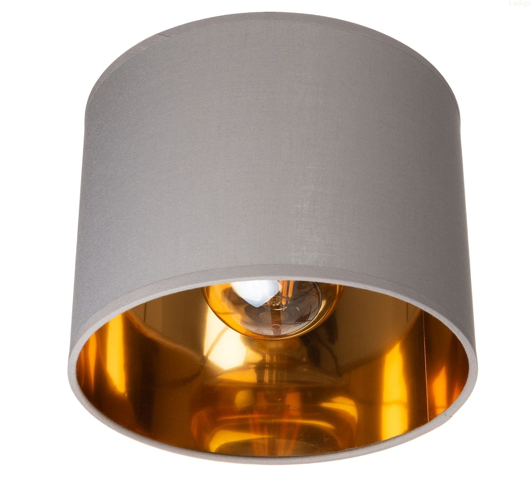 Klosze lampy z zewnątrz są szare, natomiast światło żarówek odbijać będą złote powłoki wewnętrzne kloszów.