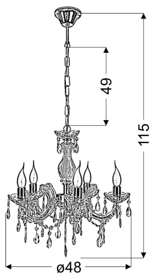 Lampa wisząca świecznik z kryształkami złota MARIA TERESA 5xE14