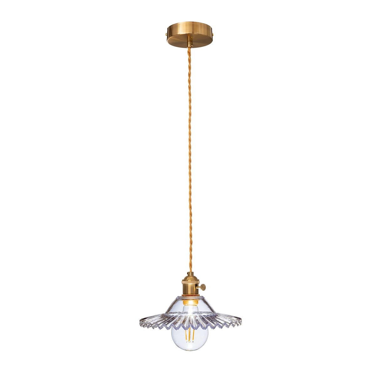 Lampa wisząca szklana BALERINA przezroczysta to propozycja dla osób szukających oryginalnych rozwiązań aranżacyjnych do pomieszczenia. Lampa ta ma szklany przezroczysty klosz o średnicy 21,5 cm, który można wymieniać. Kształtem przypomina sukienkę tańczącej baleriny, co dodaje lampie dynamizmu. Całość prezentuje się bardzo elegancko, a to dzięki złotym elementom - podsufitce, uchwytowi i kablowi. Wysokość zawieszenia można regulować, w zależności od potrzeb. Lampa idealnie może komponować się z wystrojem w pokoju dziennym, salonie, sypialni lub w jadalni.