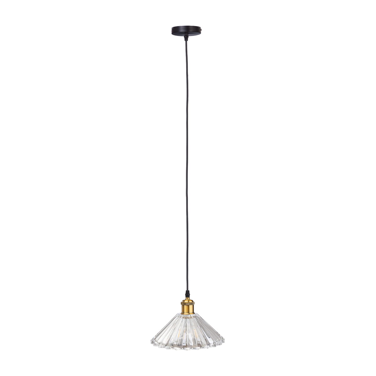 Kształt klosza modelu JAPANDI, choć na pierwszy rzut oka jest dość klasyczny, zwłaszcza, jeśli chodzi o lampy montowane w kuchniach, to za sprawą fazowanych elementów, które zostały naniesione na szkło, stał się wyjątkowy. Dzięki temu, że jest on całkowicie odsłonięty od spodu, światło żarówki może swobodnie wydobywać się na zewnątrz, doskonale oświetlając wszystko to, co znajduje się pod lampą i w jej najbliższej okolicy. Co więcej, wycięcia w szkle powodują, że światło, które odbija się w nich, ma charakterystyczny wygląd. Połączenie tego surowca z metalem sprawia, że całość prezentuje się naprawdę solidnie. Kompozycja złota, transparentności i czerń gwarantują niesamowite wrażenia estetyczne, które ogarną każdego, kto spojrzy na oferowaną przez nas lampę. Model JAPANDI został przystosowany do montażu żarówki z gwintem E27 o mocy maksymalnej 60 W.