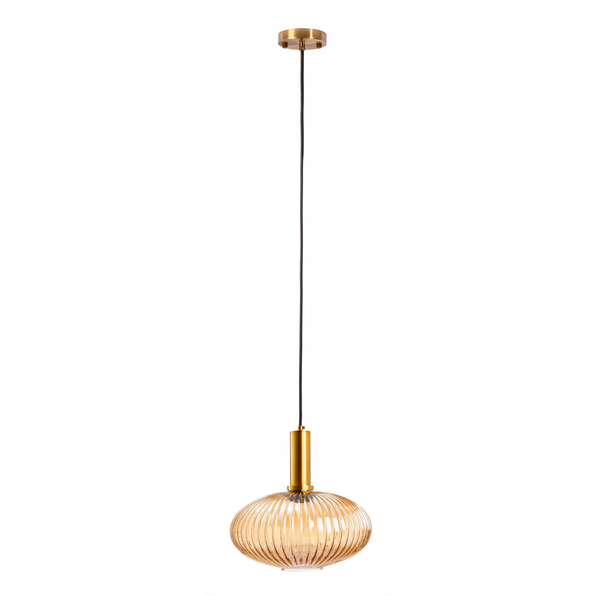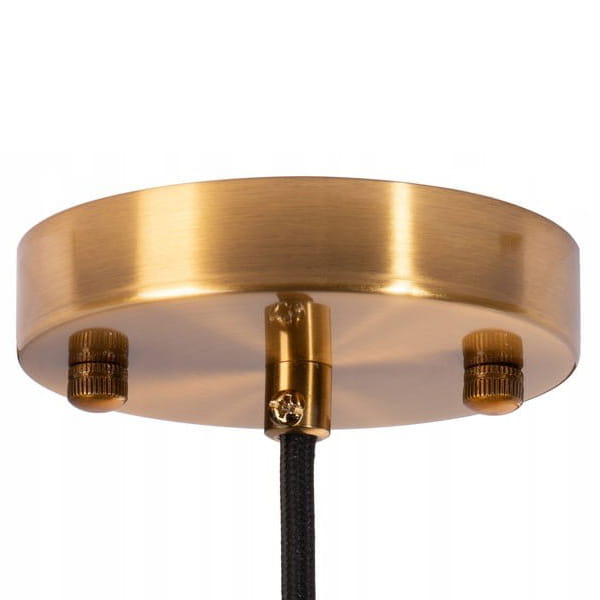 Klosz w kształcie lekko spłaszczonej elipsy wyróżnia ten model spośród wielu. Trzeba przyznać, że jest to dość niezwykły kształt, zwłaszcza, że z oprawy odprowadzony został złoty walec, który pełni rolę osłony kabla. Piękny, bursztynowy kolor zastosowany w lampie podniósł jej walory estetyczne na nowy poziom.