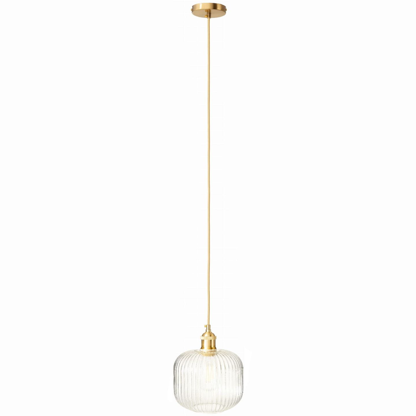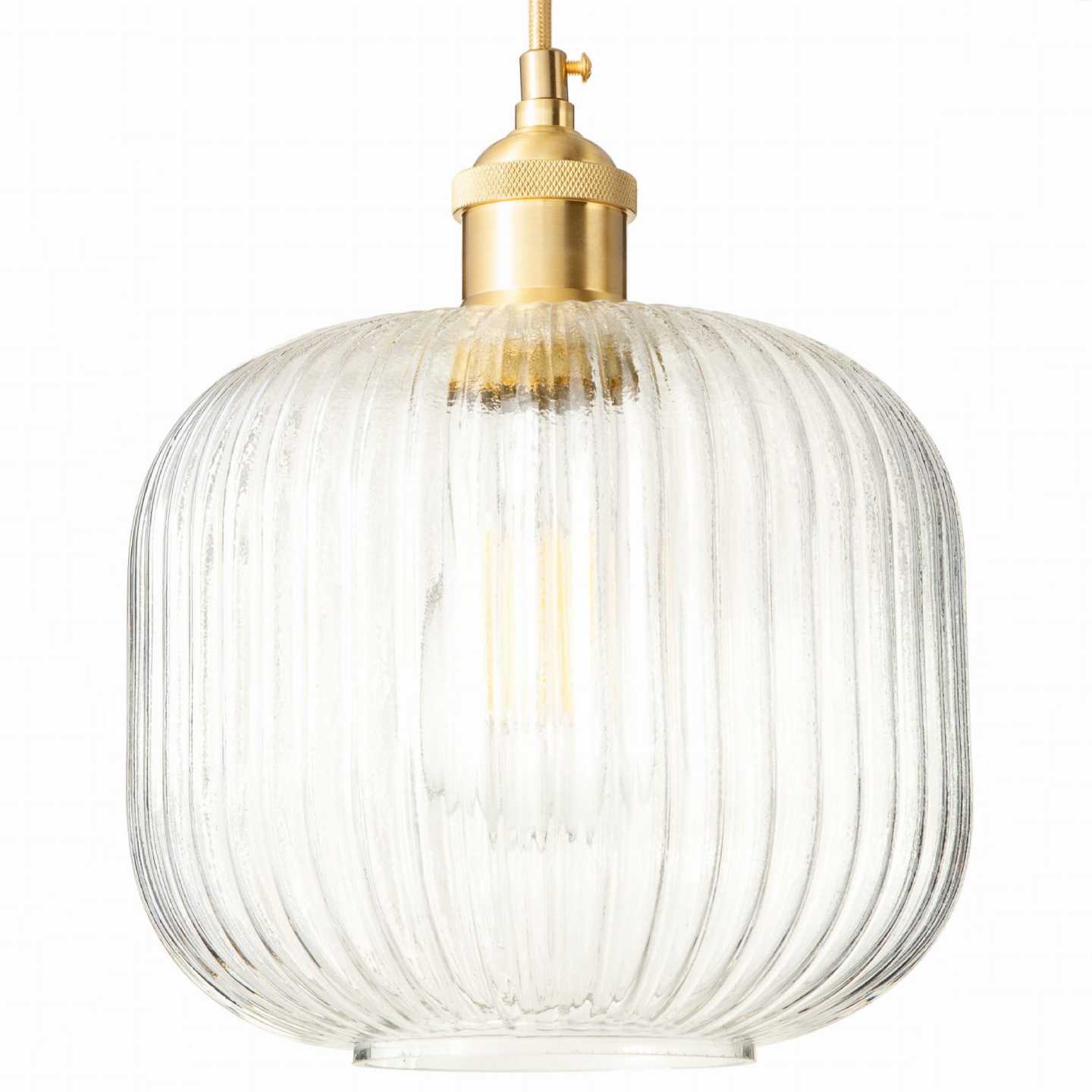 Kluczową cechą lampy wiszącej Torino jest transparentny klosz, który w połączeniu ze złotymi elementami wprowadza styl i elegancję do każdego pomieszczenia. Złoty kabel i podsufitka dodają blasku i klasycznego uroku, a otwór na dole klosza o średnicy 9 cm umożliwia łatwe czyszczenie lampy i zamontowanie żarówki. Ta transparentna lampa wisząca szczególnie pięknie będzie wyglądała w połączeniu z dekoracyjnymi żarówkami np. filamentowymi.