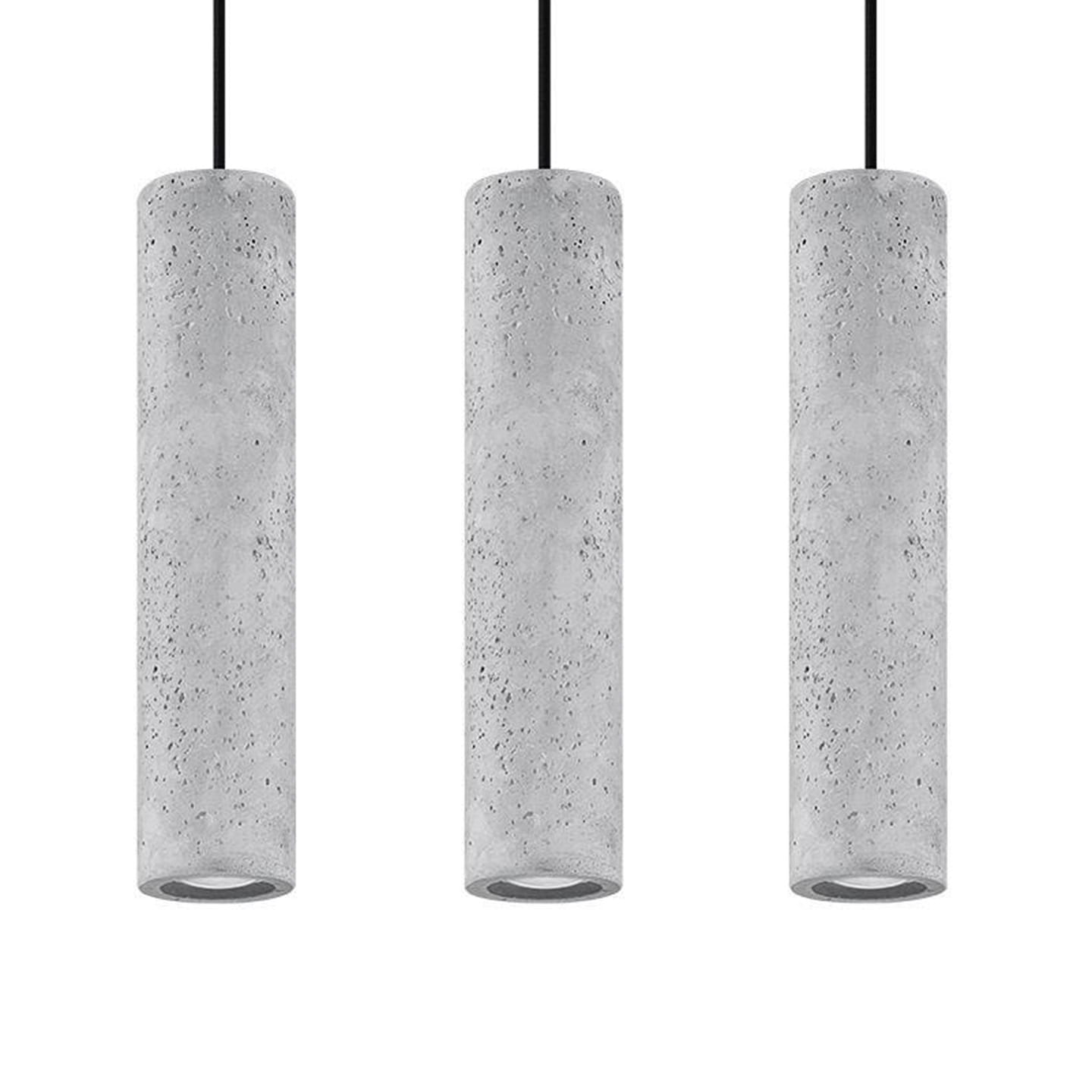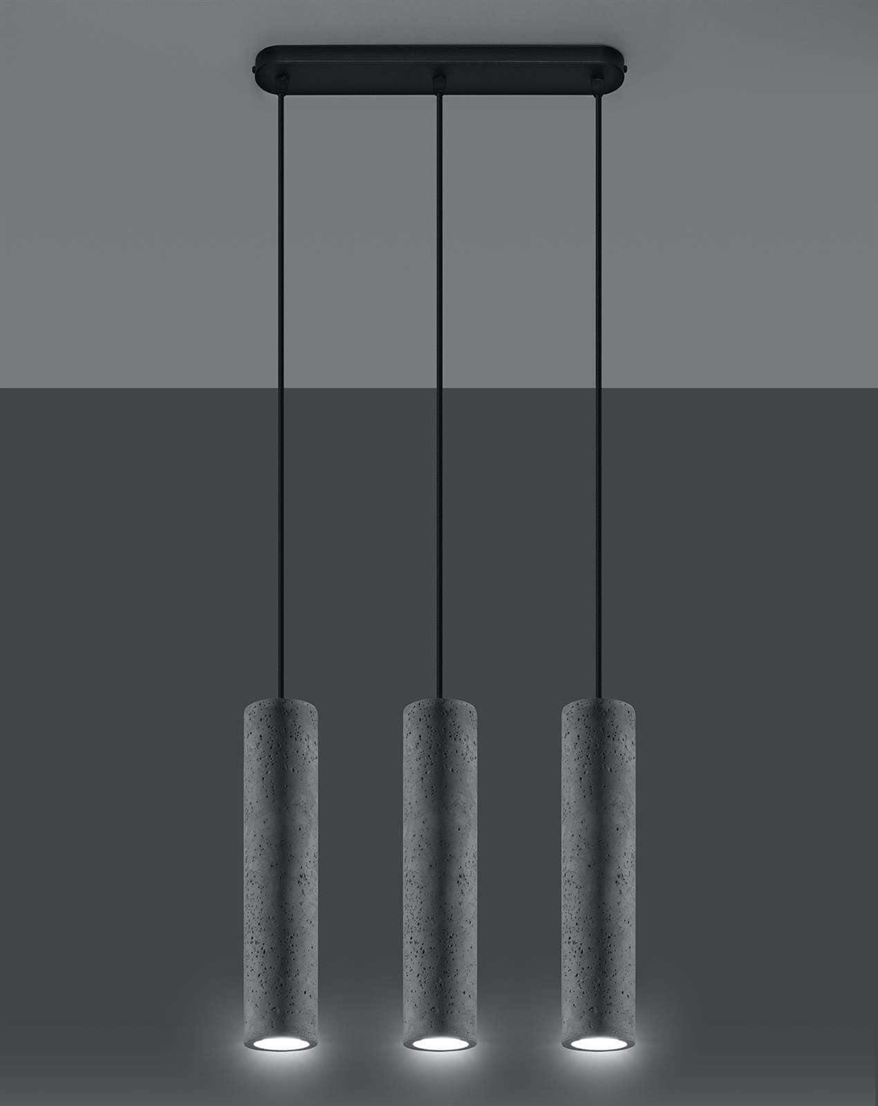 Potrójna, betonowa lampa wisząca LUVO nie tylko oświetli stół w jadalni, wyspę kuchenną czy sypialnię. Oferowany model sprawdzi się także jako unikalna dekoracja. Lampa została wykonana z trwałego betonu, co nadaje jej surowego charakteru. Ten model został stworzony z myślą o industrialnych i loftowych aranżacjach. Minimalistyczna forma sprawia, że lampa prezentuje się bardzo nowocześnie.