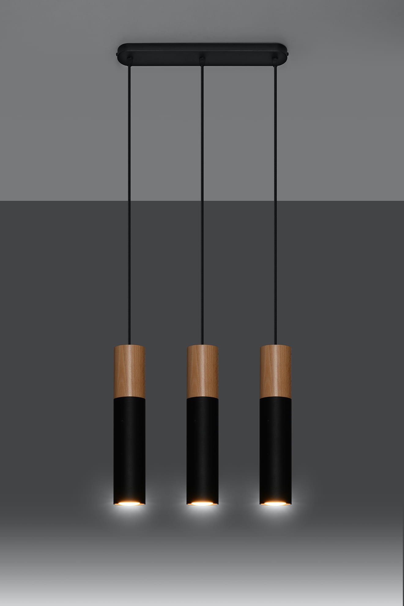 Lampa wisząca tuba potrójna PABLO czarno drewniana