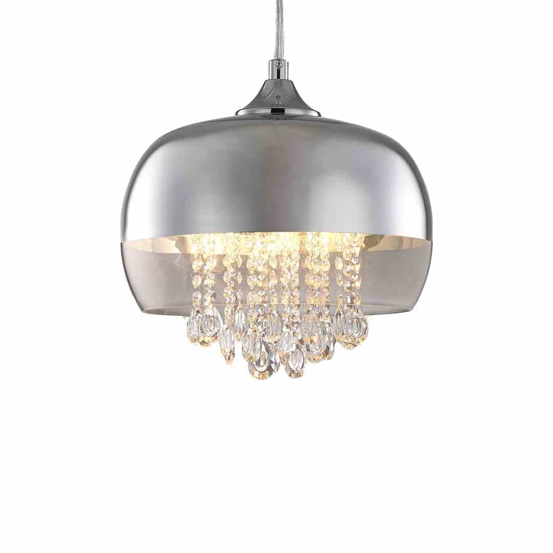 Piękna, bogato zdobiona lampa wisząca doskonale wkomponuje się we wszystkie eleganckie wnętrza, a szczególnie te utrzymane w stylu glamour. Lampa została wykonana z metalu oraz szkła i posiada popularny gwint E14. Regulacja zwisu od 50 do 90 cm umożliwia dostosowanie długości lampy do pomieszczenia. Nieszablonowy design sprawia, że lampa może pełnić funkcję nie tylko oświetleniową, ale również dekoracyjną.
