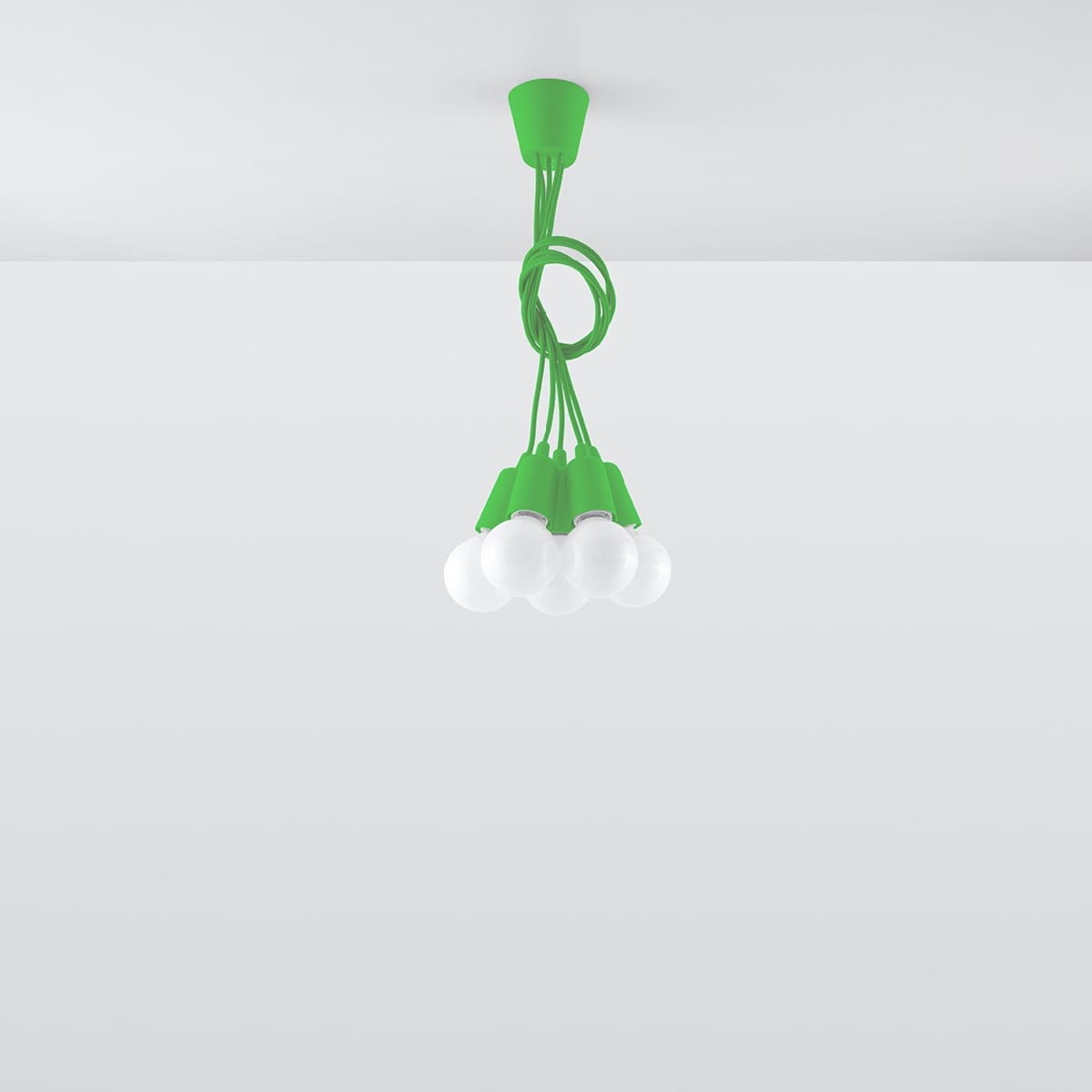 Lampa wisząca żarówki na kablu zielona DIEGO 5xE27