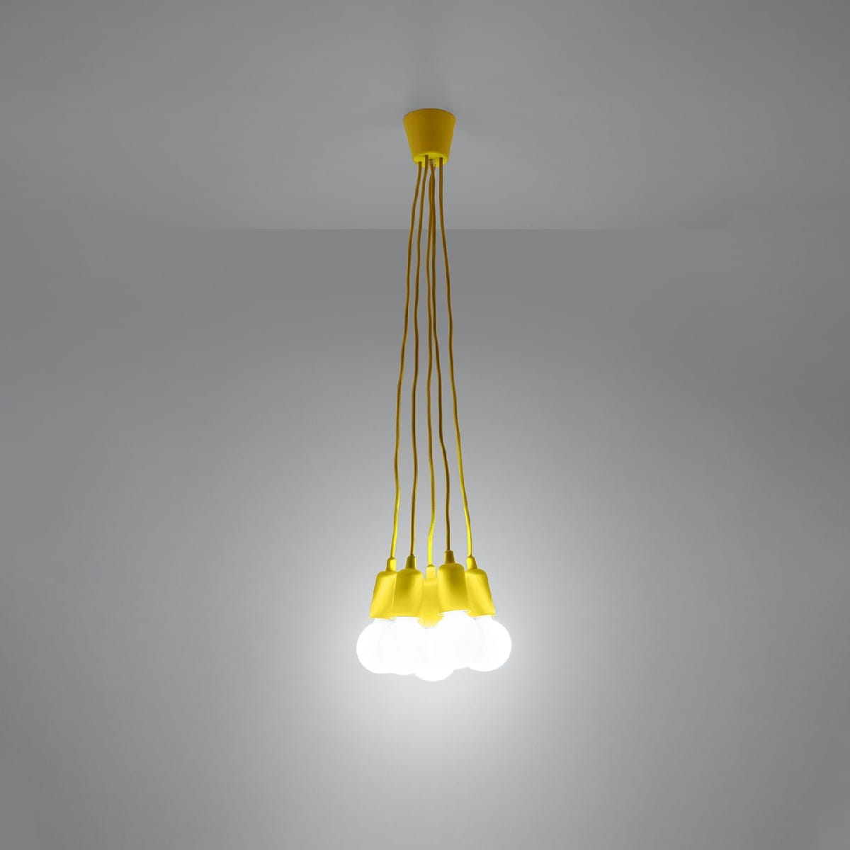 Lampa wisząca żarówki na kablu żółta DIEGO 5xE27