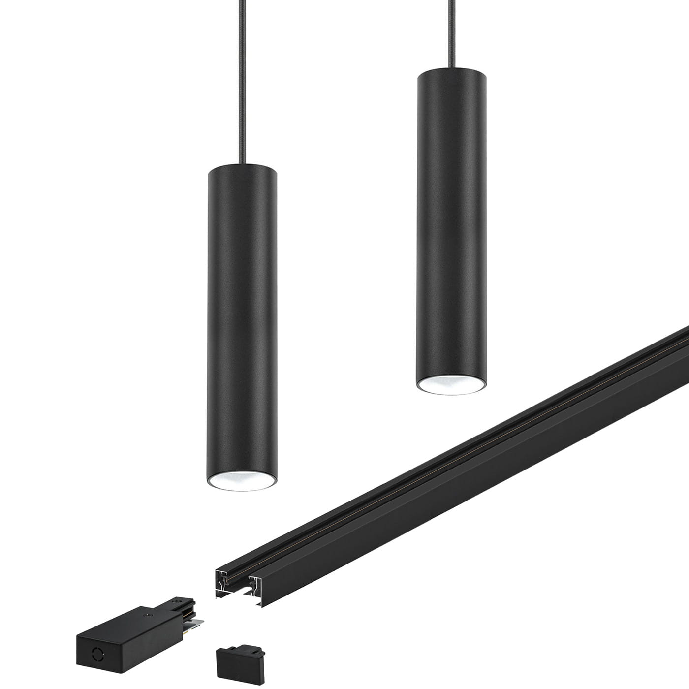 Lampy czarne na szynie Zestaw 2 x Oprawa TUBO + Szynoprzewód 100 cm 1-fazowy