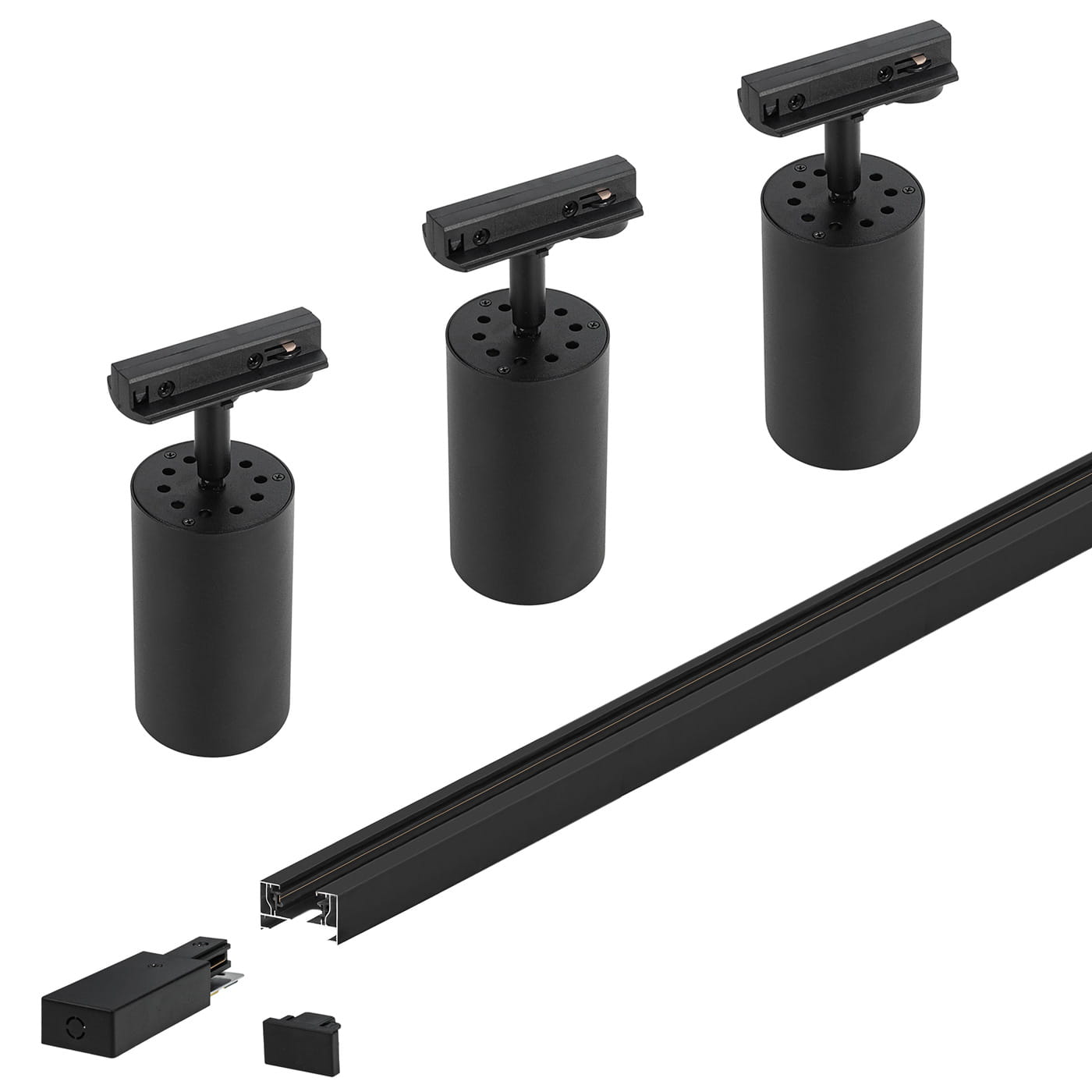 Lampy na szynie Zestaw 3 x lampa PIVOT czarna + szyna 1,5m Premium 1-fazowe