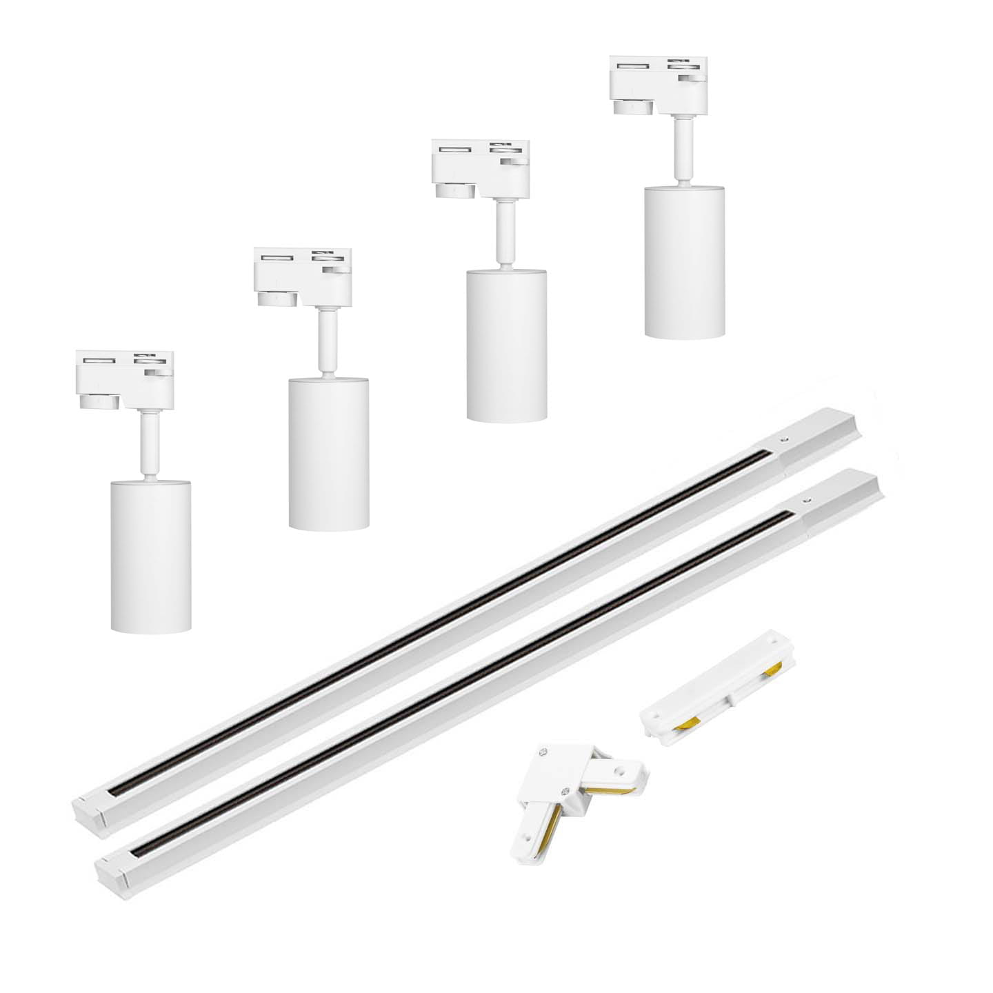 Lampy na szynie białe 90° zestaw 4 szt. na GU10 + szynoprzewód
