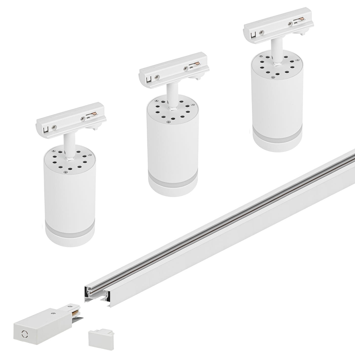 Lampy na szynie białe Zestaw 3 x reflektor PIVOT RING + szynoprzewód 1,5m 1-fazowy