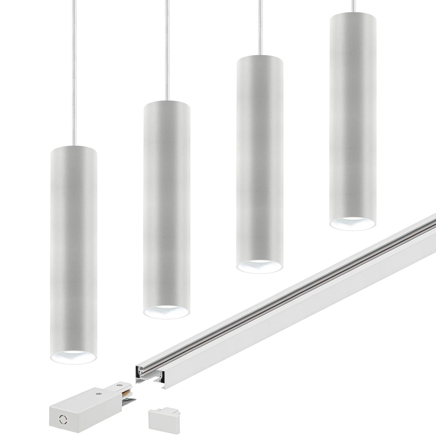 Lampy na szynie białe Zestaw 4x lampa wisząca TUBO + szynoprzewód 150 cm 1-fazowy
