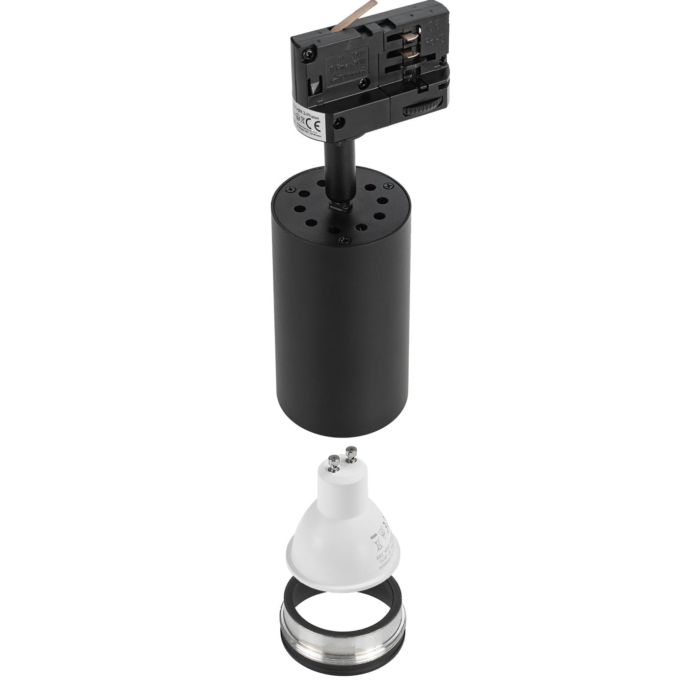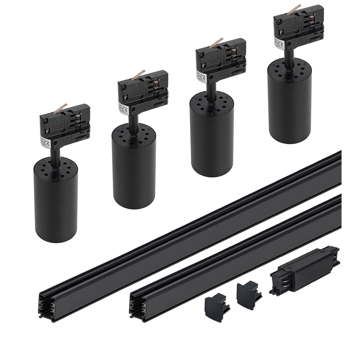 Lampy na szynie czarne 4x oprawa PIVOT + 2x szyna 1m łącznik zasilający 3 fazowy