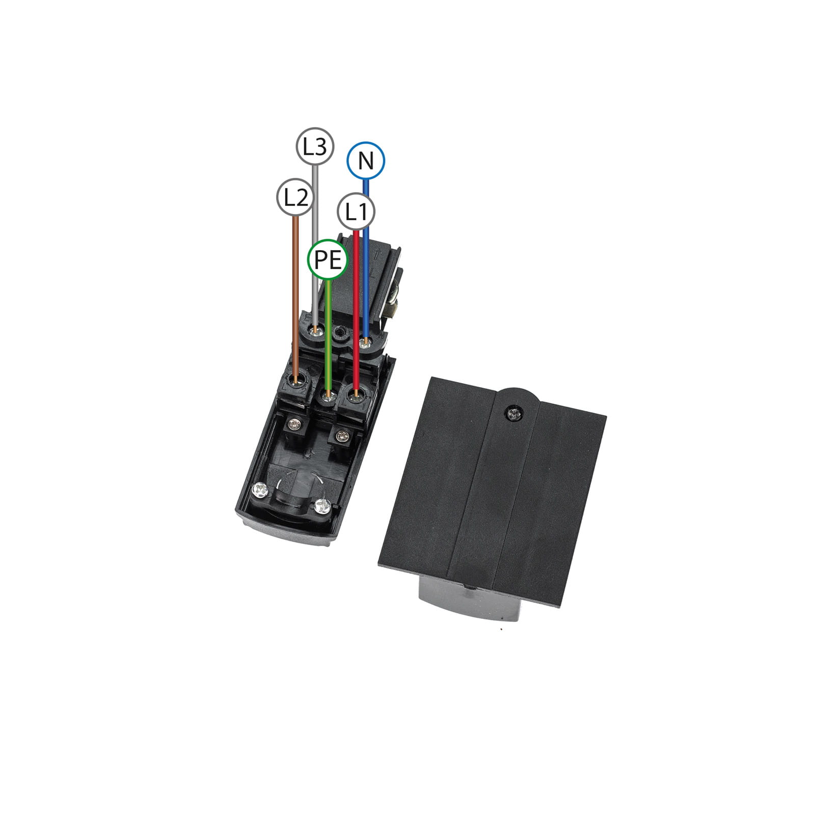 Moduł zasilający do szynoprzewodów 3-fazowych podtynkowych czarny