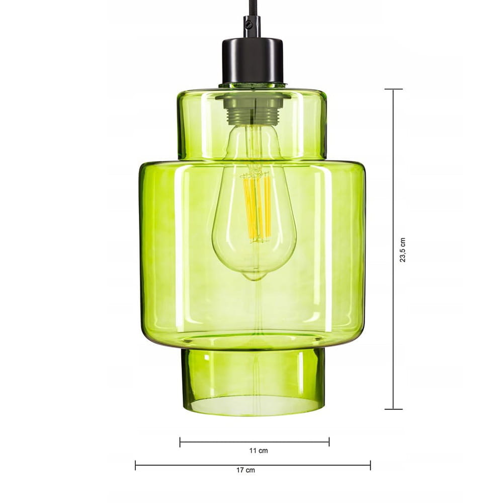 Lampa posiada miejsce na zamontowanie jednej żarówki E27 o maksymalnej mocy 60W. Polecamy zastosowanie żarówki dekoracyjnej, która będzie się świetnie prezentować w półprzezroczystym, zielonym kloszu lampy wiszącej.