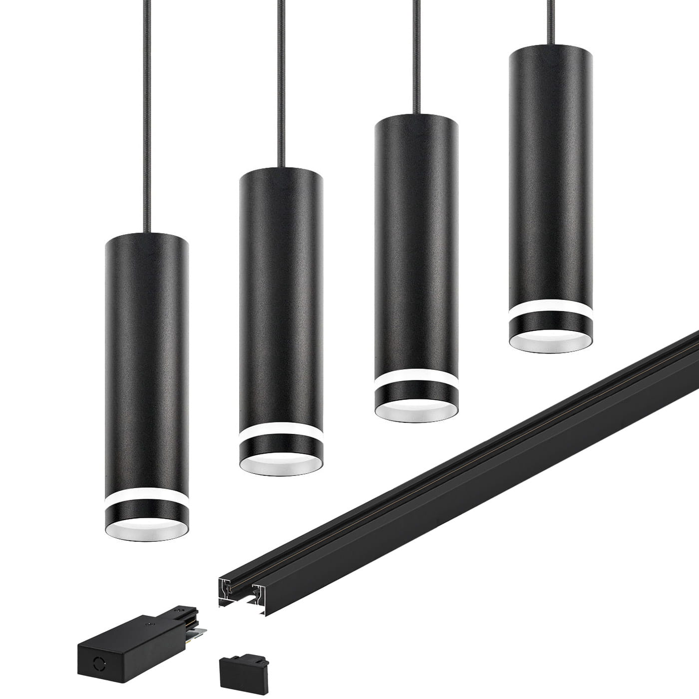 Oświetlenie na szynie czarne 4x oprawa TUBO RING + szyna 1.5m