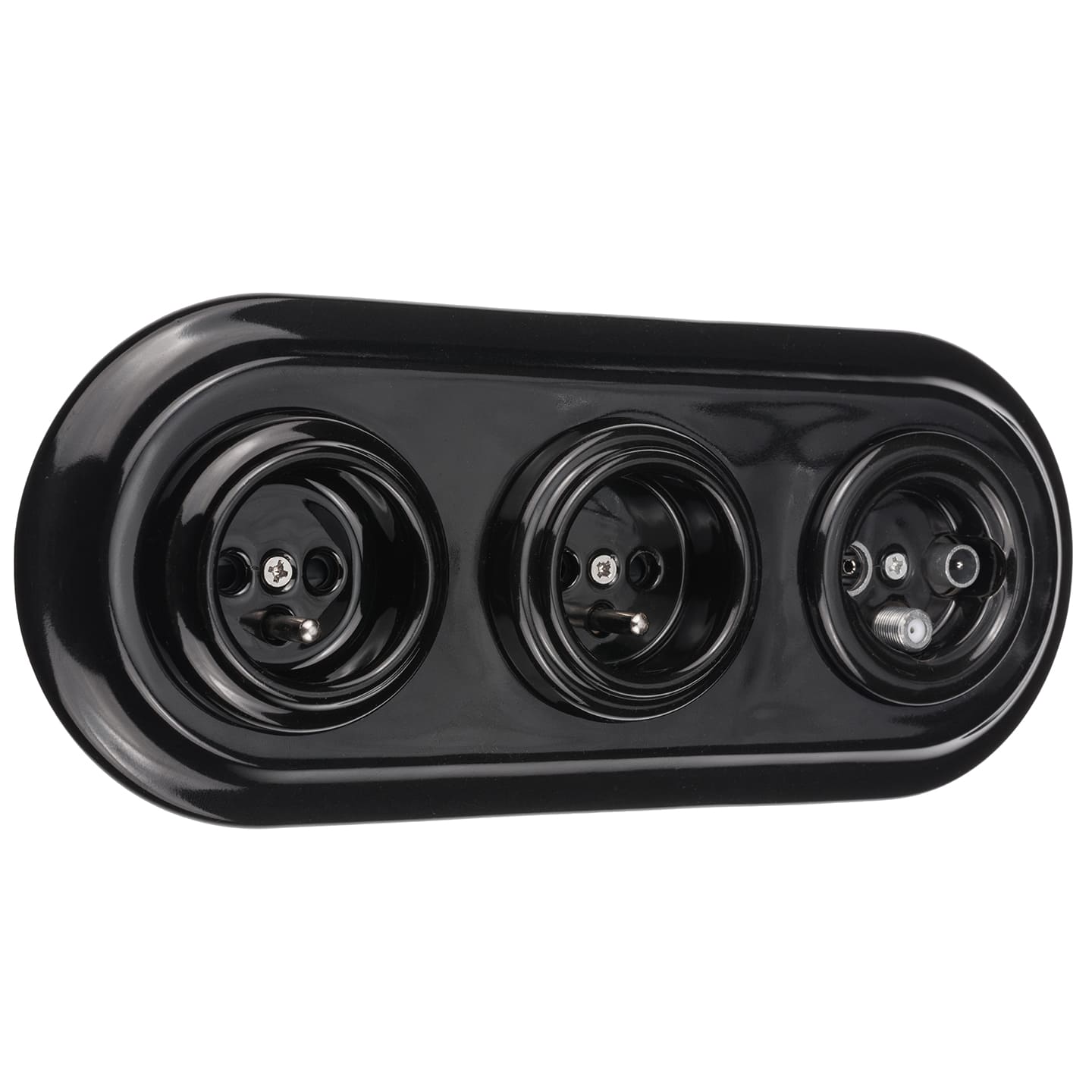 Ramka do gniazdek i włączników elektrycznych potrójna retro ceramiczna czarna
