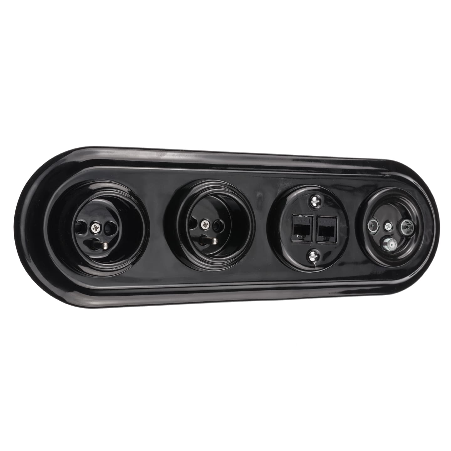Ramka poczwórna do gniazdek i włączników elektrycznych retro ceramiczna czarna
