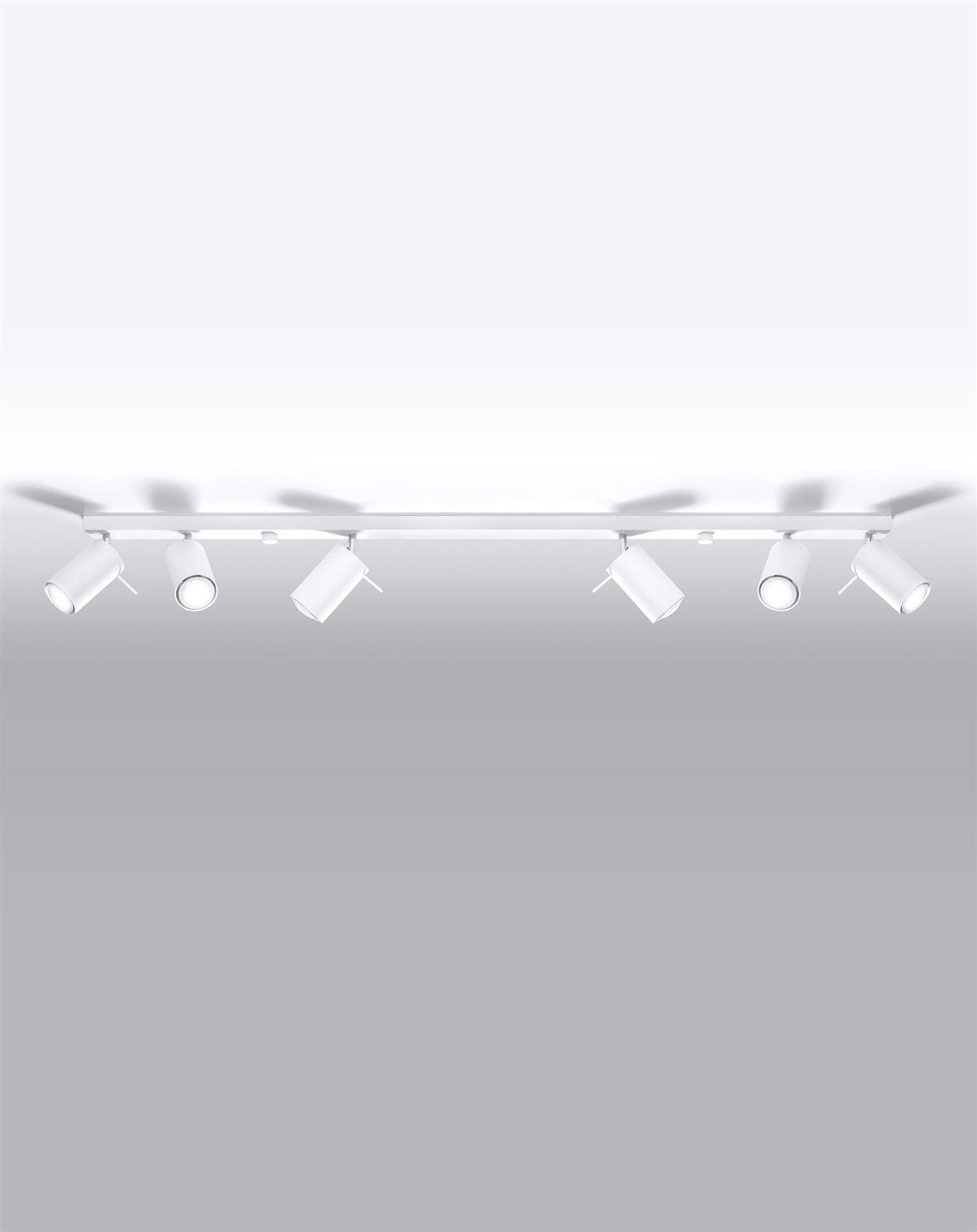 6 praktycznych reflektorów na jednej listwie tworzą doskonały zestaw, który bez trudu oświetli nawet najbardziej przestronny salon, korytarz czy sypialnię. Lampy możesz ustawić pod dowolnym kątem tak, aby światło dotarło nawet do trudno dostępnych zakamarków. Reflektory i listwa zostały wykonane z wysokiej jakości stali malowanej proszkowo. Biały kolor zestawu sprawia, że świetnie prezentuje się w nowoczesnych wnętrzach, utrzymanych w minimalistycznym stylu.