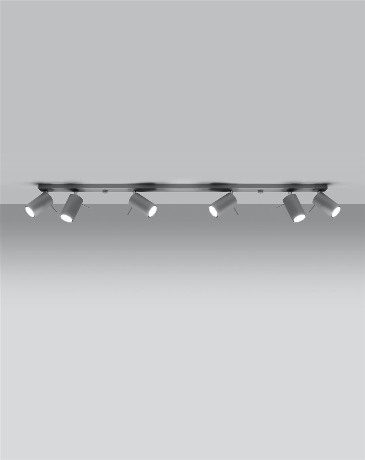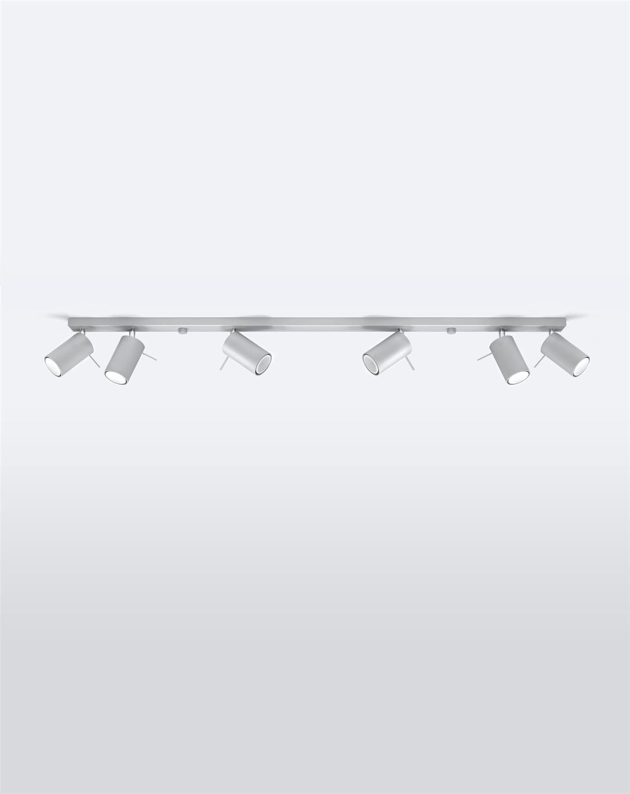 Lampa z sześcioma praktycznymi reflektorami to zestaw, który bez problemu oświetli nawet najbardziej przestronne pomieszczenie w Twoim domu czy lokalu usługowym. Lampy zostały wyposażone w funkcję regulacji kąta padania światła. Dzięki temu możesz skierować strumień świetlny dokładnie tam, gdzie potrzebujesz! Reflektorki na szynie SPOT zostały wykonane z niezwykle wytrzymałej stali malowanej proszkowo na uniwersalny, szary kolor.