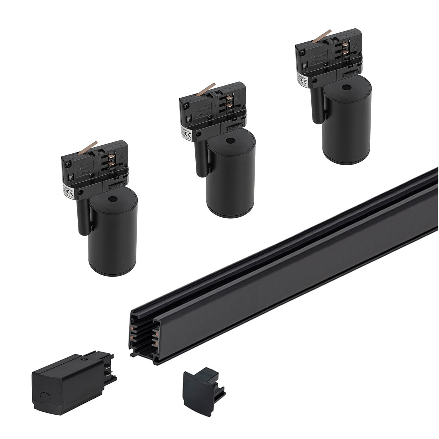 Reflektory sufitowe na szynie czarne 3x oprawa PIVOT MINI + szyna 1,5 m 3-fazowa