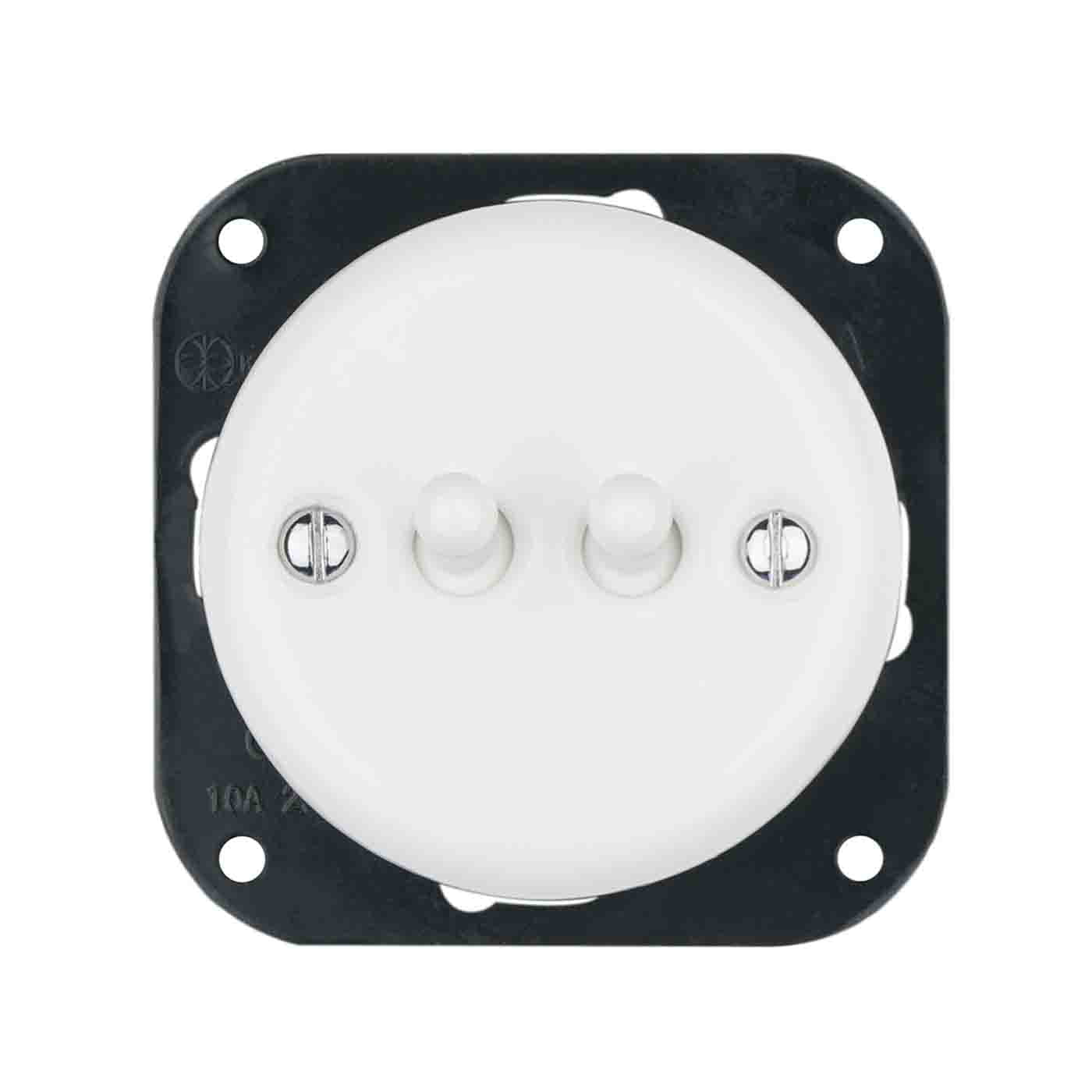 Włącznik ceramiczny dźwigienkowy schodowy podwójny biały