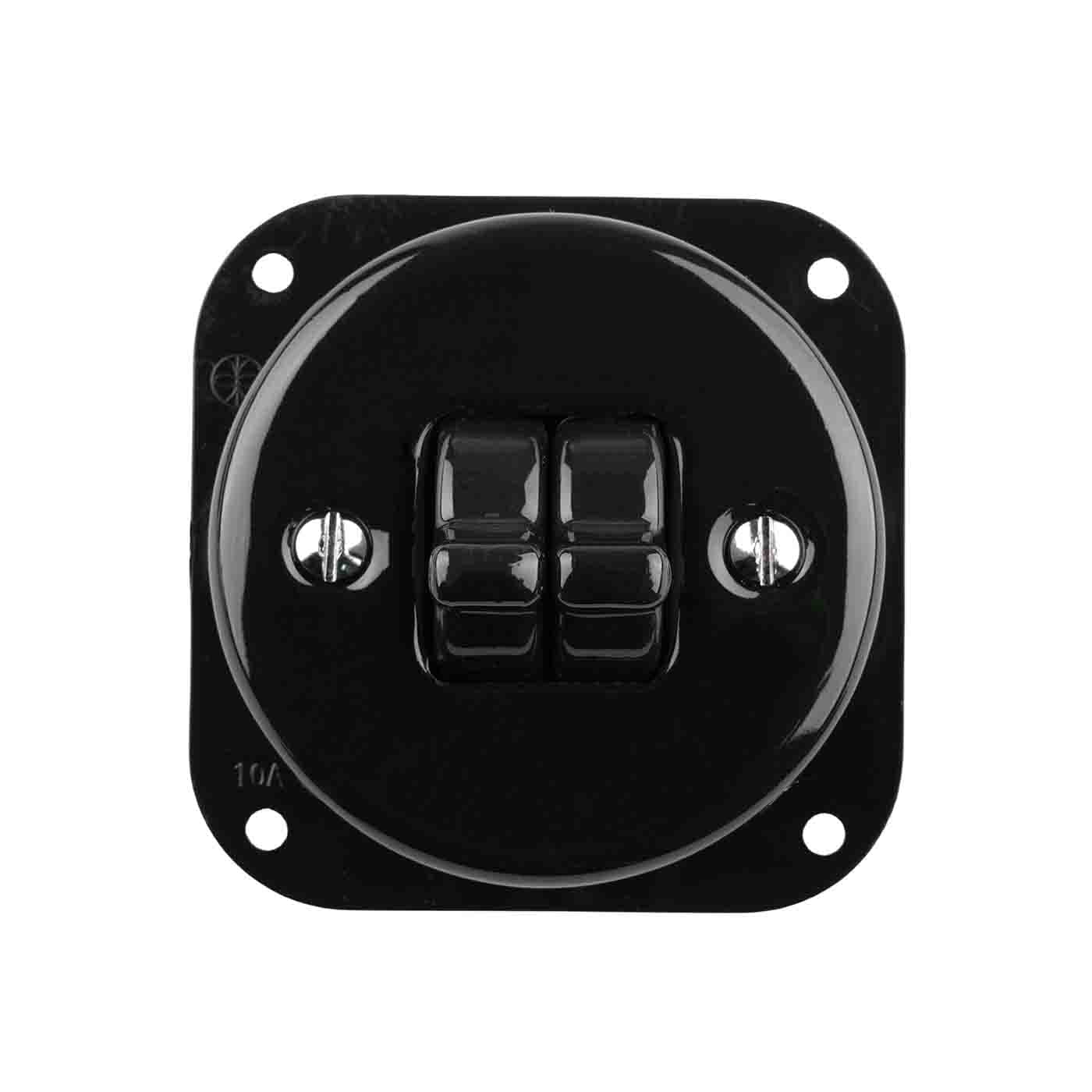 Włącznik ceramiczny hebelkowy schodowy podwójny czarny