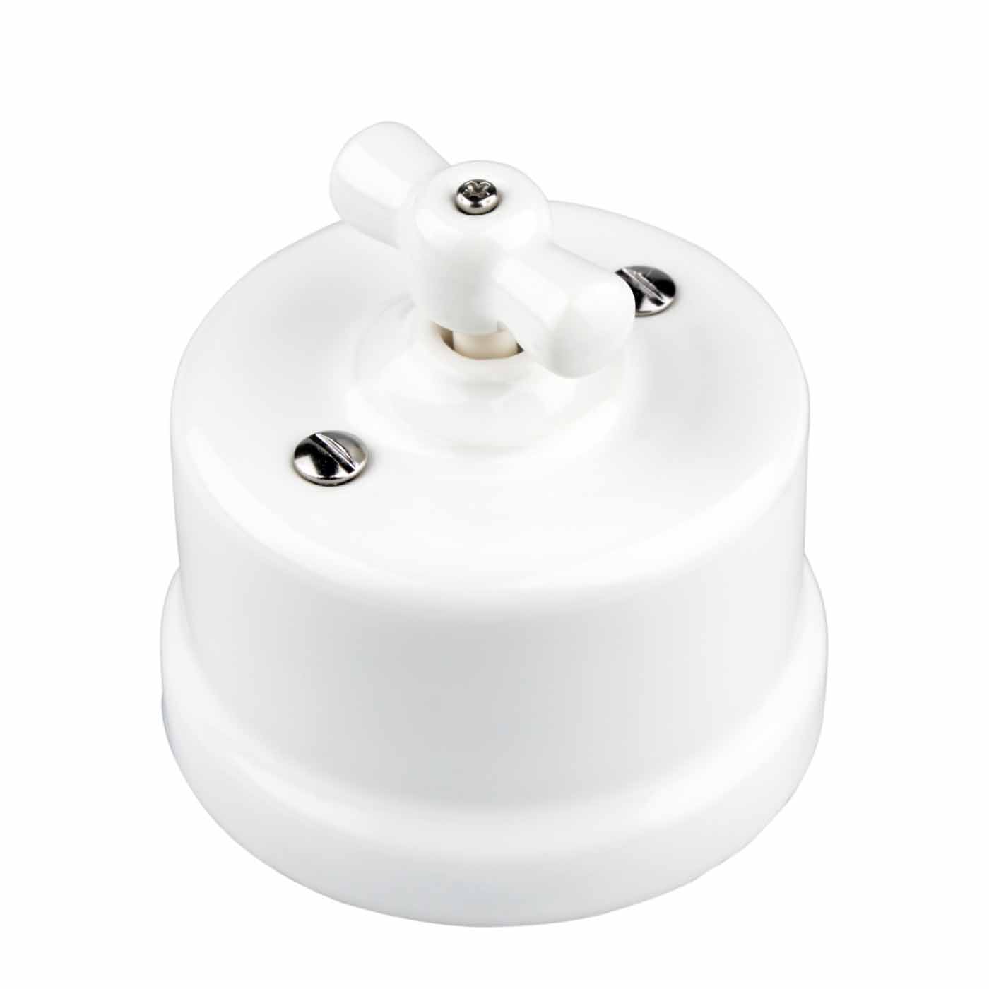 Włącznik światła obrotowy ceramiczny schodowy natynkowy biały