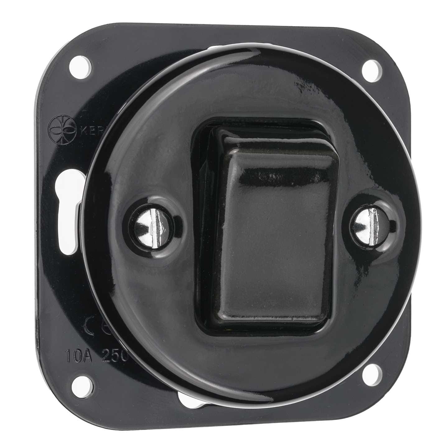 Wyłącznik ceramiczny krzyżowy retro czarny do ramki