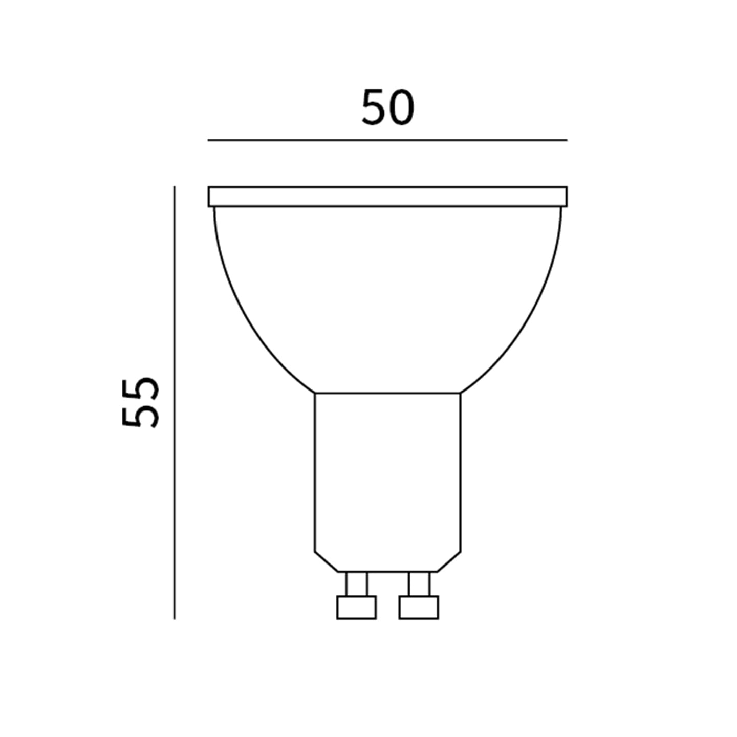 Ta żarówka posiada praktyczny, łatwy w montażu gwint GU10, który jest kompatybilny z wieloma lampami znajdującymi się w naszej ofercie. Ciepłe barwa emitowanego światła i szeroki kąt jego rozsyłu (80°) sprawia, że żarówka doskonale sprawdzi się w oświetleniu głównym salonu, jadalni czy korytarza. Uniwersalny, biały design oprawy doskonale prezentuje się we wnętrzach skandynawskich.