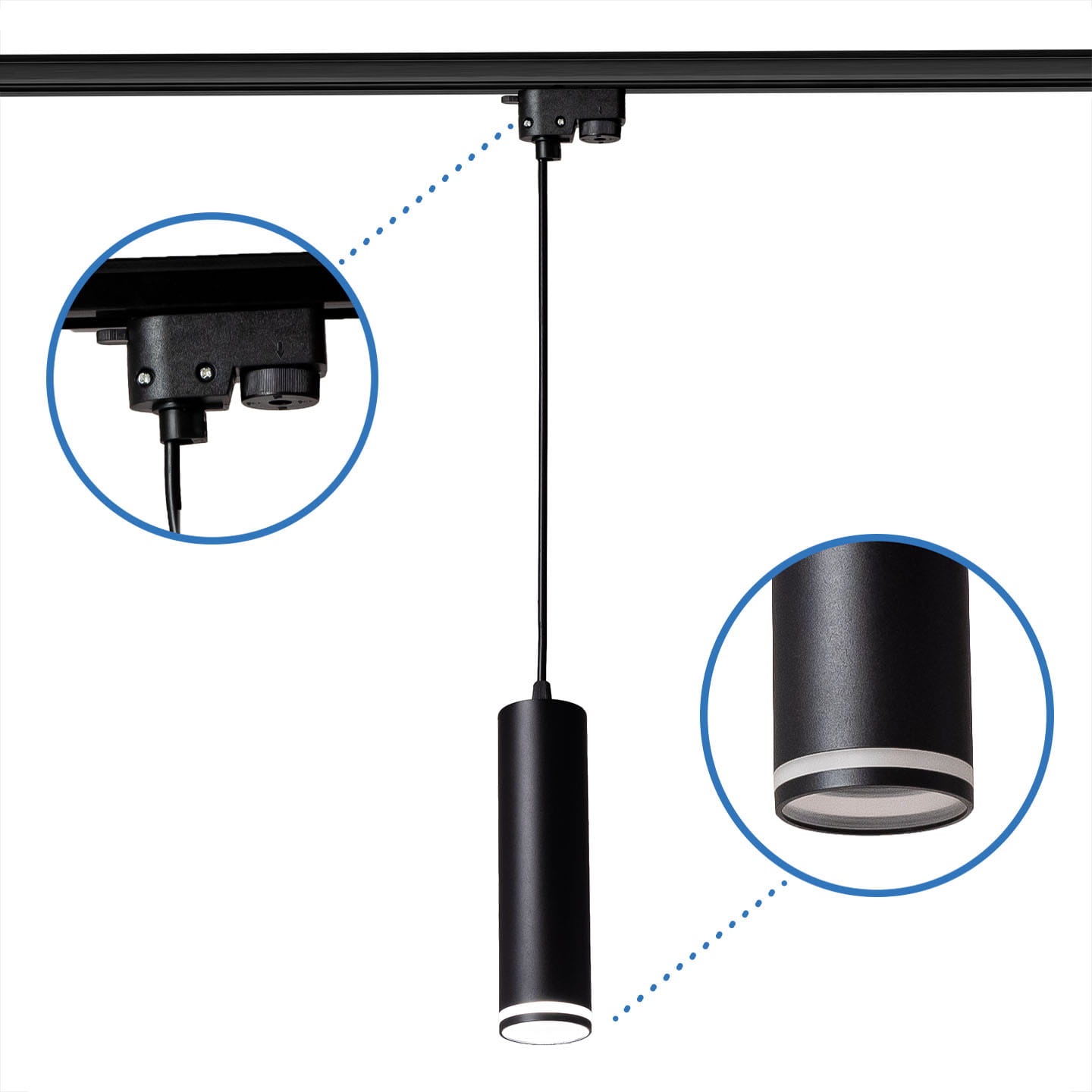 - 3 x lampa szynowa wisząca na żarówkę GU10 z ringiem jednofazowa czarna