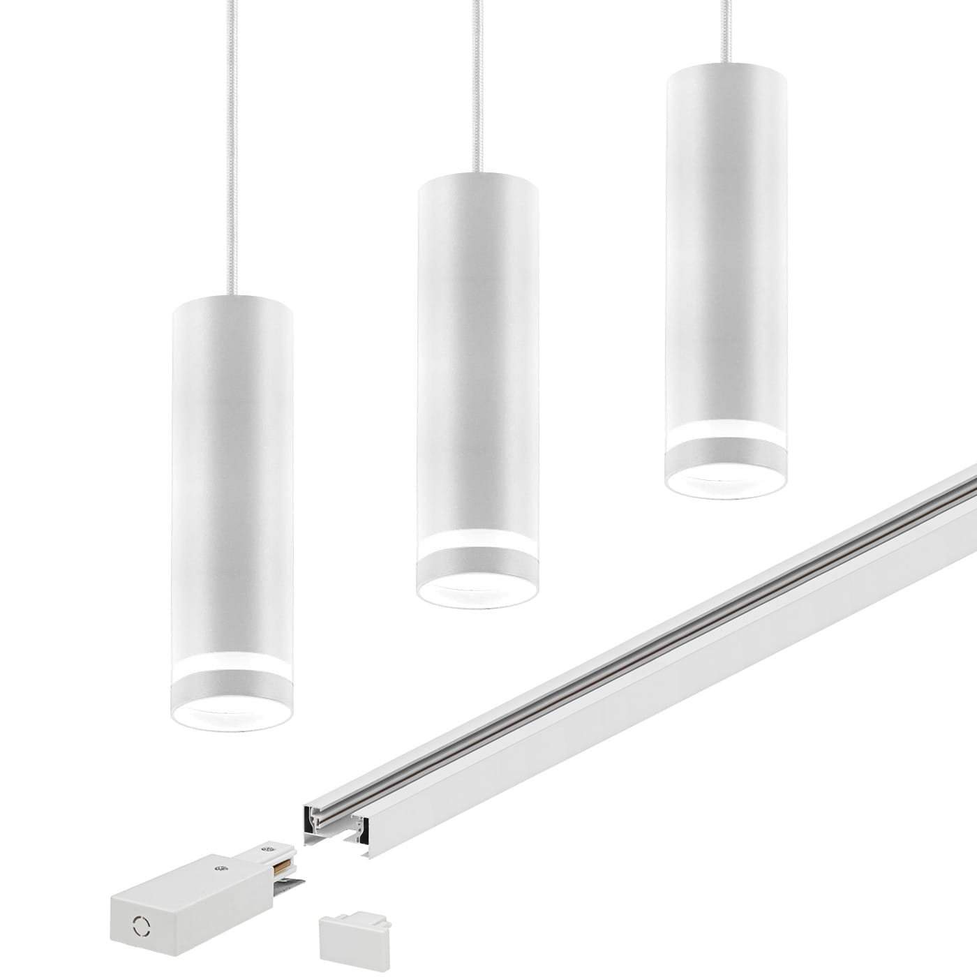 Zestaw 3x oprawa szynowa wisząca TUBO RING biała + szynoprzewód 1m Szynoprzewód 1-fazowy biały 1.5 m