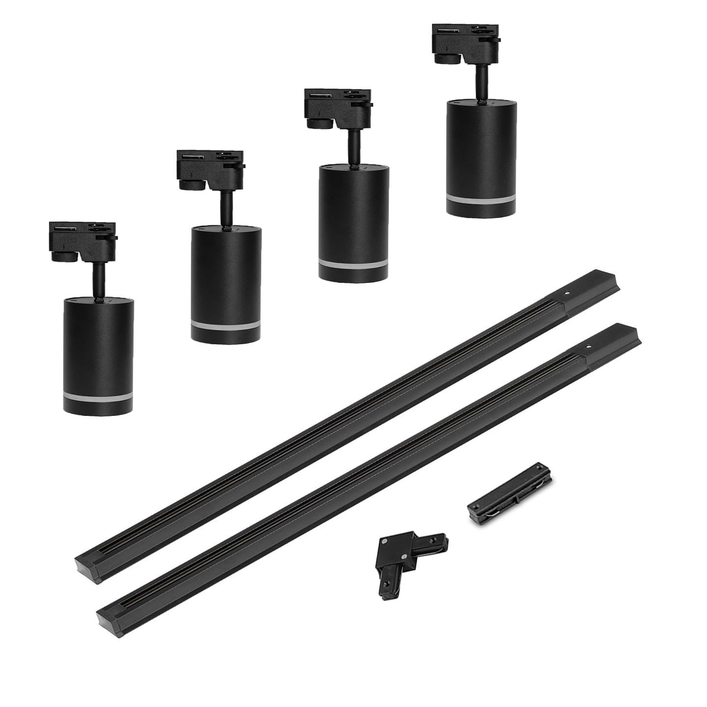 Zestaw 4x Lampa szynowa RING czarna 70mm szeroka GU10 + 2x szyna 1m + łącznik