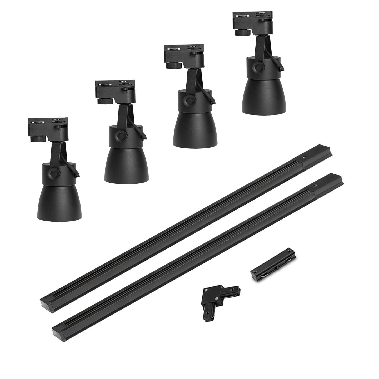 Zestaw 4x Reflektor szynowy czarno złoty GOLDI GU10 1-fazowa + 2x szyna 1m + łącznik